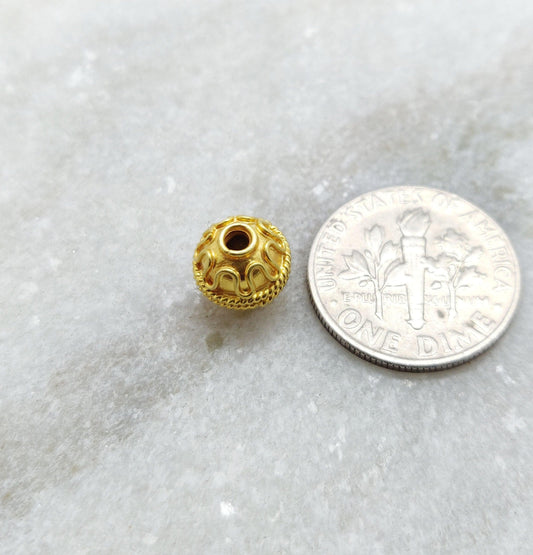 18k Gold Filigree Fancy Ball Bead Finding Jewelry Supplies