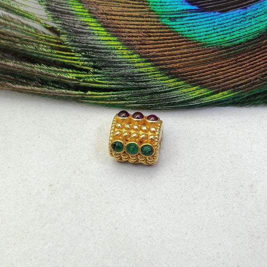 18K Gold Emerald, Ruby Drum Style Spacer Beads Findings