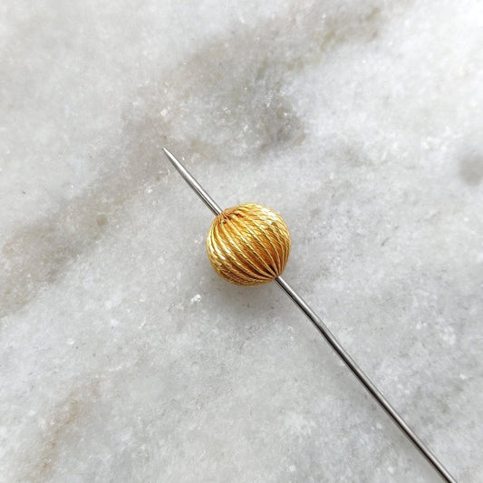 18k Solid Yellow Gold Fluted Ball Spacer Bead 11x10.5mm
