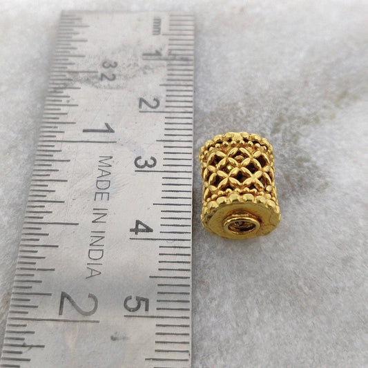 18k Yellow Gold Mesh Drum Spacer Beads Findings
