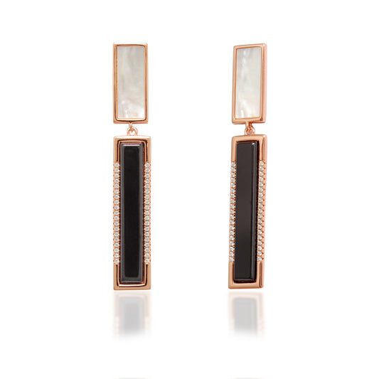 925 Sterling Silver Enamel Onyx Dangle Earrings – Statement Gift for Women