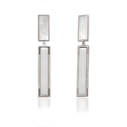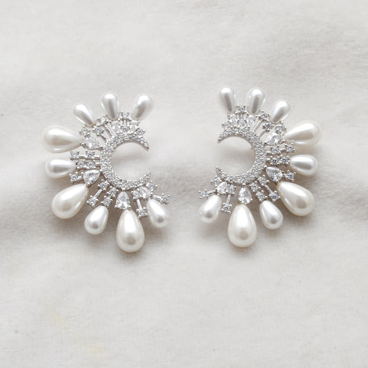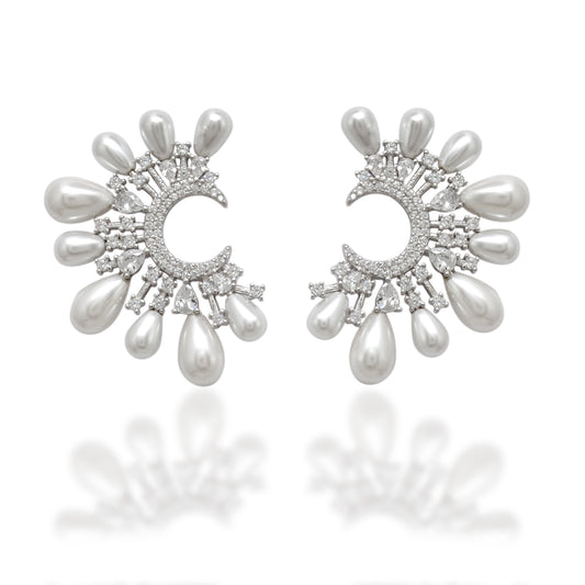 925 Sterling Silver CZ & Pearl Statement Dangle Earrings – Elegant Gift for Women