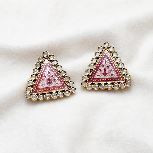 925 Sterling Silver Enamel CZ Triangle Stud Earrings – Unique Gift for Her