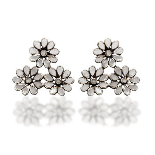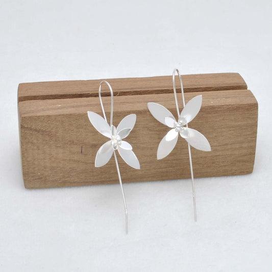 Floral Silver Dangle Long Stem Earrings for Women