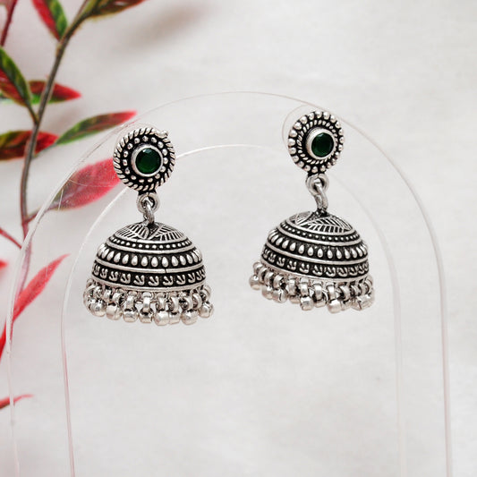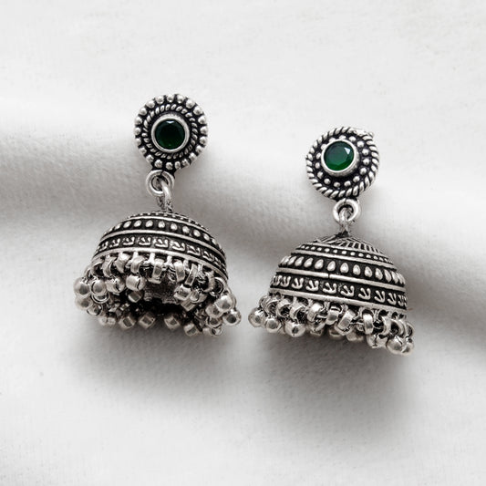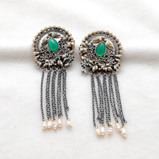 925 Sterling Silver Oxidized Green Stone Dangle Earrings – Handmade Gift for Women