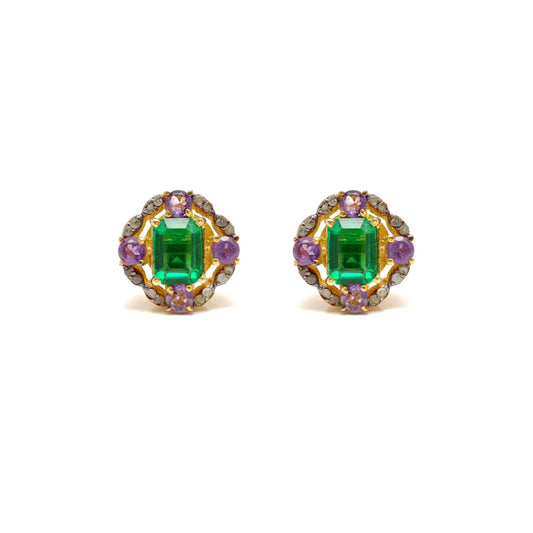 Baguette Emerald Amethyst Pave Diamond Stud Earring Jewelry
