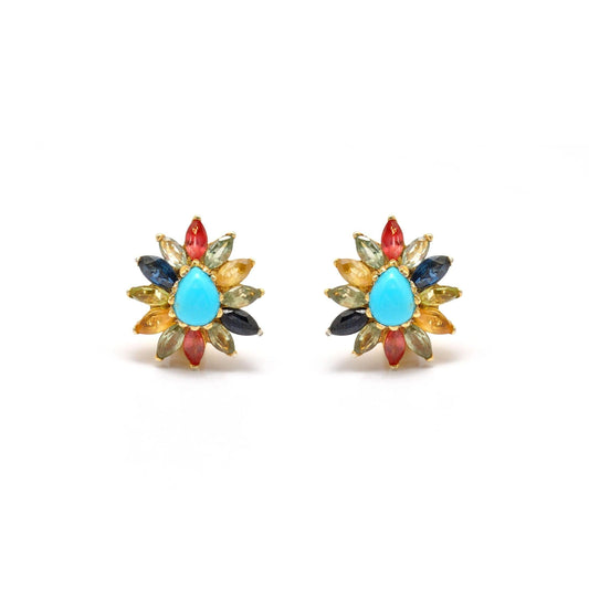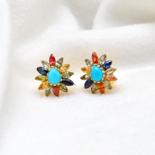 Natural Turquoise Multi Stone Stud Earring