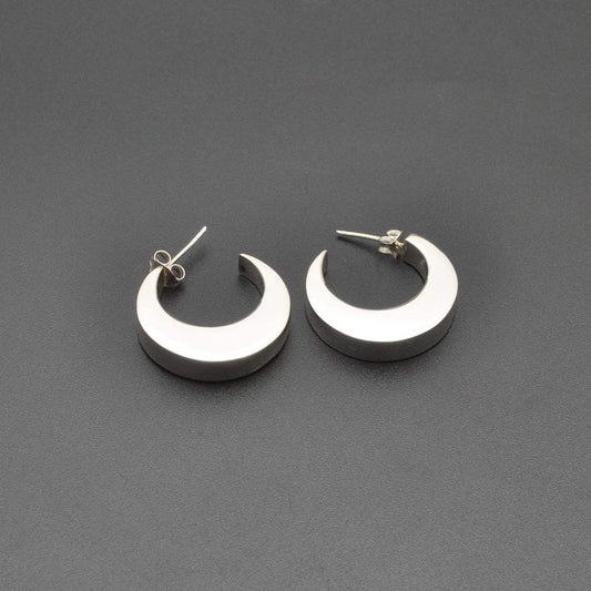 Crescent moon Huggie hoop silver earrings stud