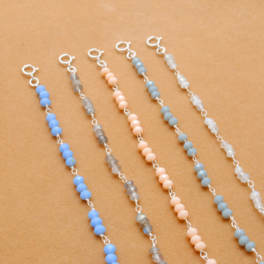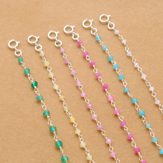 925 Sterling Silver Pastel Chalcedony Dainty Necklace – Peach, Pink & More