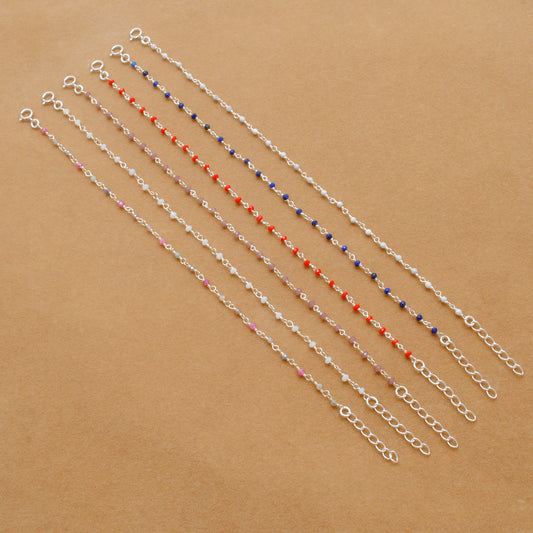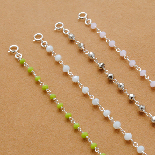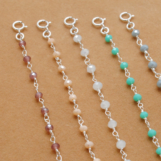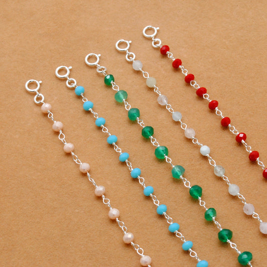 Handmade 925 Sterling Silver Rosary Chain Bracelet and Matching Necklace – Dangling Beads Jewelry