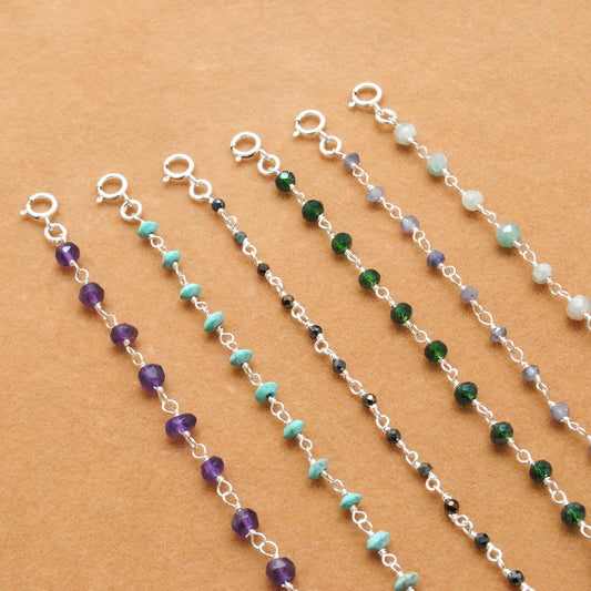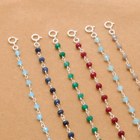 925 Sterling Silver Multi-Gemstone Beaded Rosary Necklace | Kanika Creations