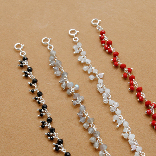 Multi-Stone Sterling Silver Bracelet with Amethyst, Moonstone & More - Kanika Creations