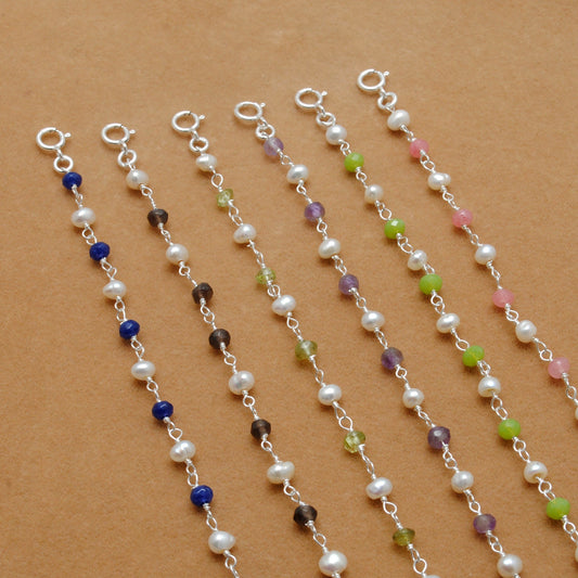 925 Sterling Silver Pearl & Multi-Gemstone Beaded Necklace - Perfect Gift