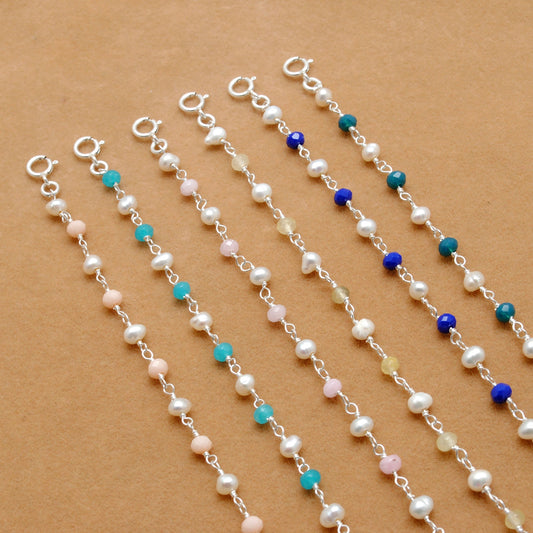 925 Silver Multi Chalcedony & Pearl Chain Necklace – Matching Bracelet Available