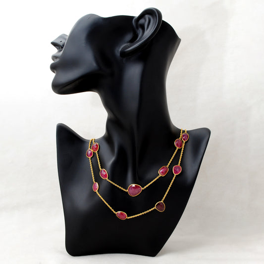 925 Sterling Silver Natural Ruby Rose Cut Layered Necklace