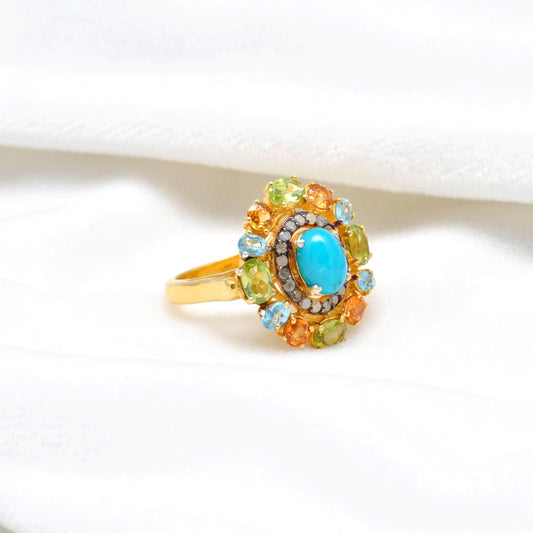 Multi Gemstone Diamond 18k Gold Plated Turquoise Victorian Rings