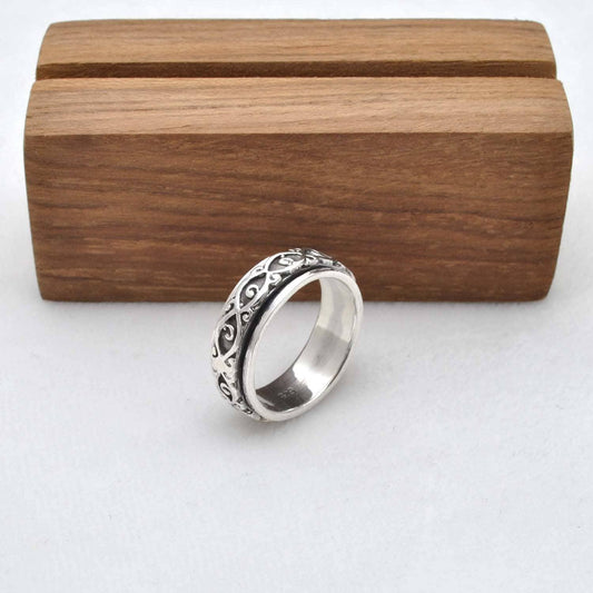 925 Sterling Silver Fidget Tribal Spinner Band Ring 11 US