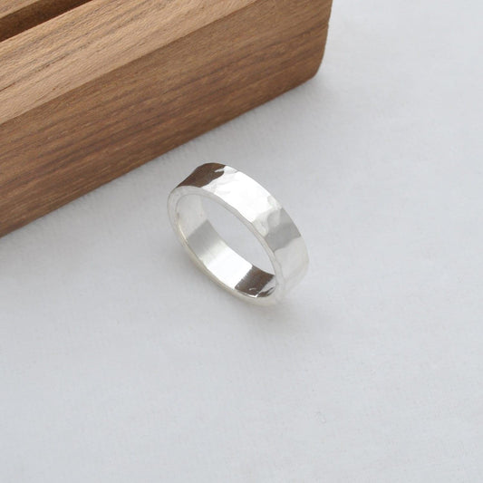 Handmade Sterling Silver Beaten Band Ring Size 8