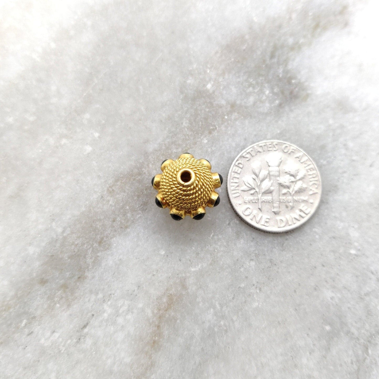 Achieve luxury with our 12mm 18K Gold Rondelle Spacer Bead, featuring a stunning Emerald Stone. Crafted from high-quality materials, it adds elegance and durability to any design.