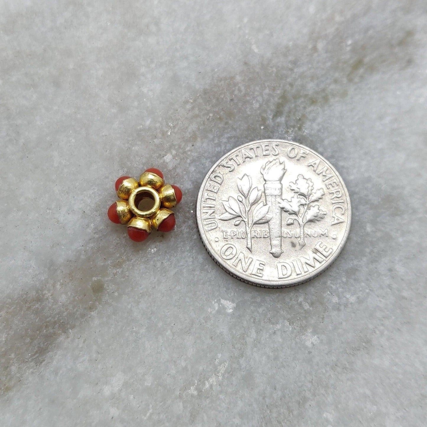 18k Gold Bead Wheel Coral Stone Spacer Beads 8mm