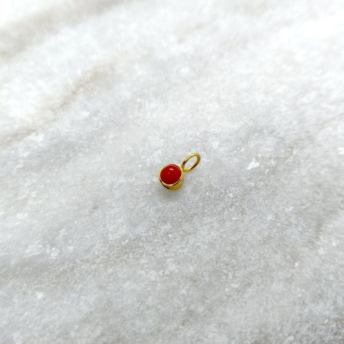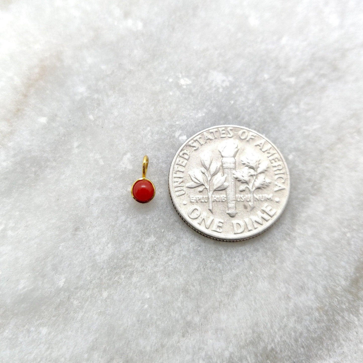18k Solid Yellow Gold Round Stone Charm Pendant 7mm