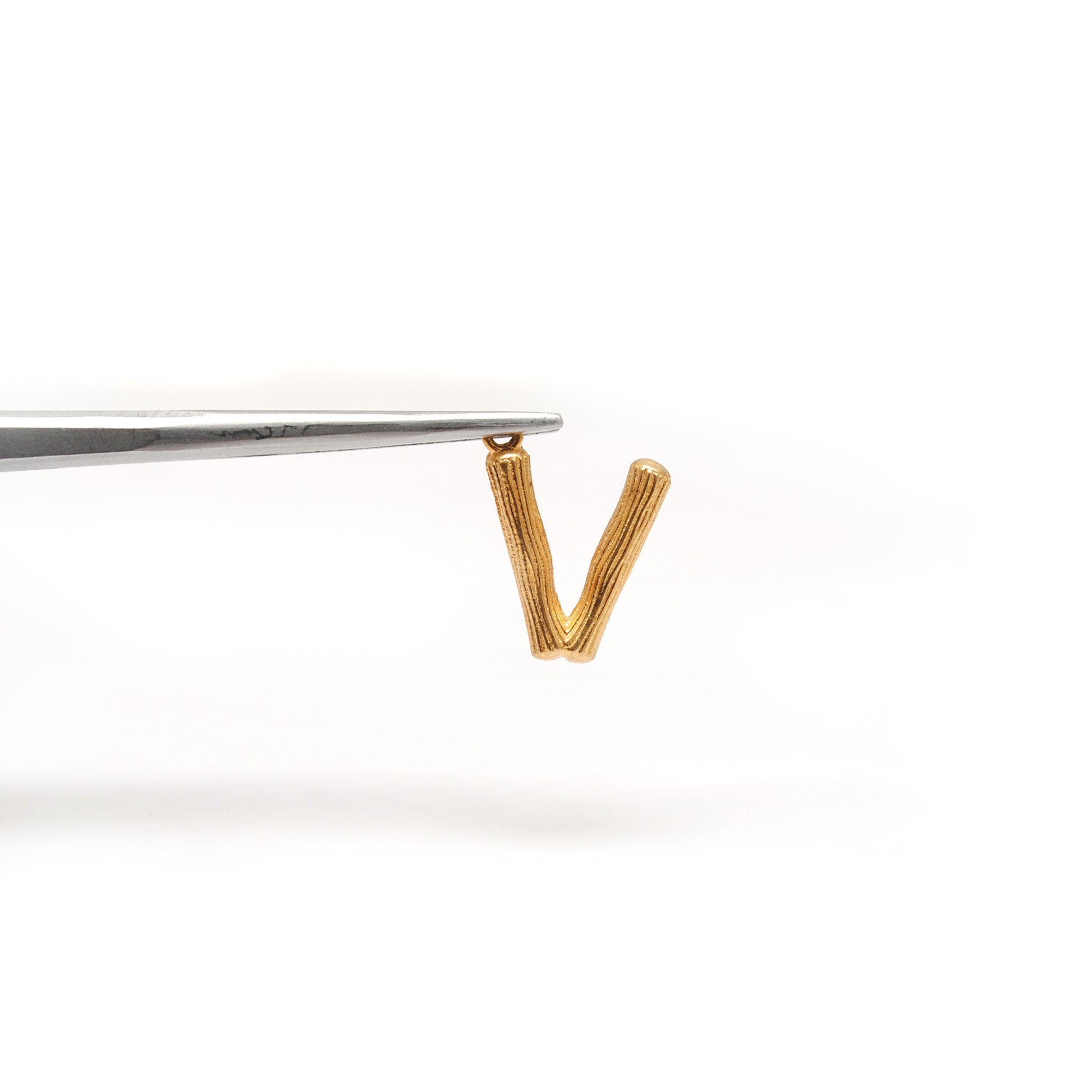Crafted with precision in 18k gold, this V-shaped initial letter pendant adds a touch of elegance to any outfit. Its timeless design and high-quality materials make it the perfect accessory for any occasion. Choose your own initial or give as a thoughtful gift to a loved one.