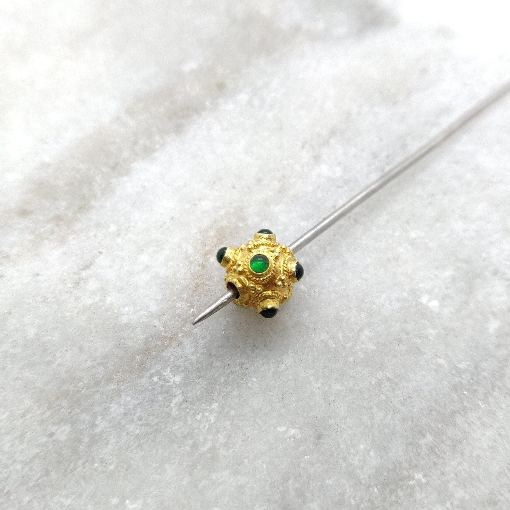 18K Solid Yellow Gold Emerald Ball Spacer Beads 8mm