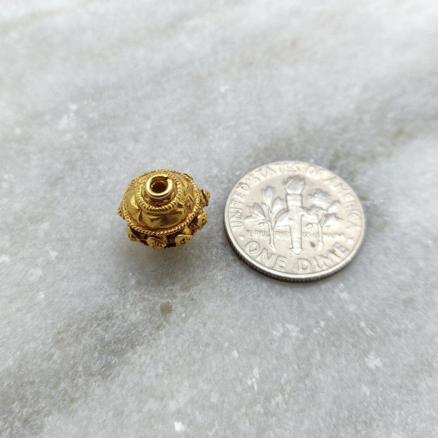 Add a touch of luxury to your jewelry collection with these 18k gold Round Spacer Beads. These charm jewelry pieces feature a unique design that adds depth and dimension to any piece.