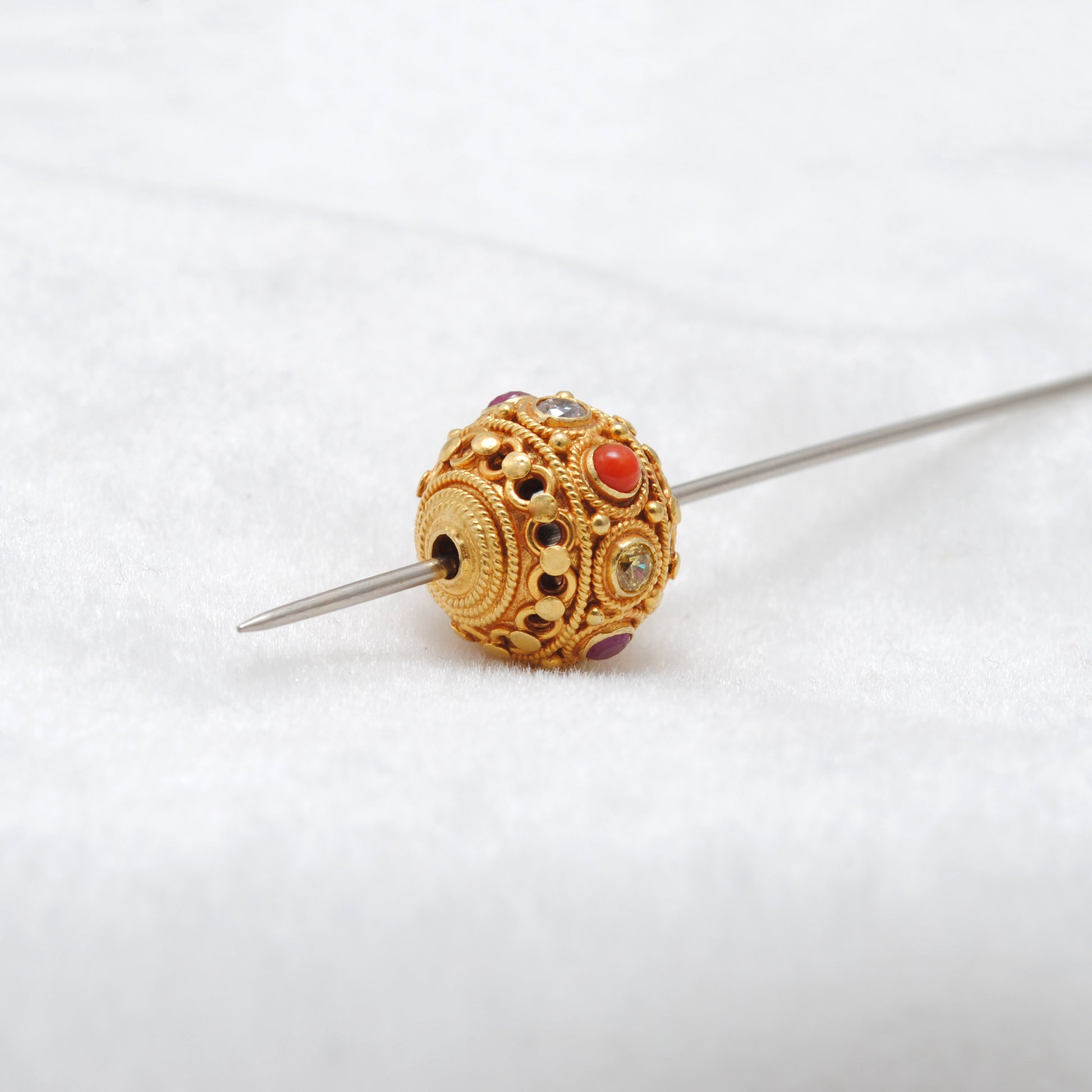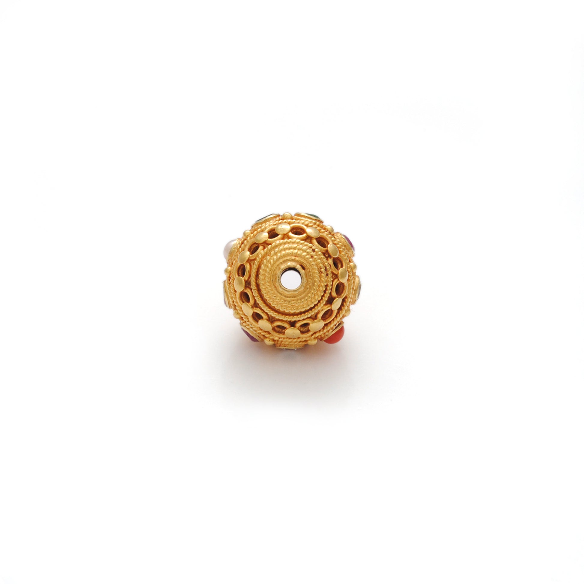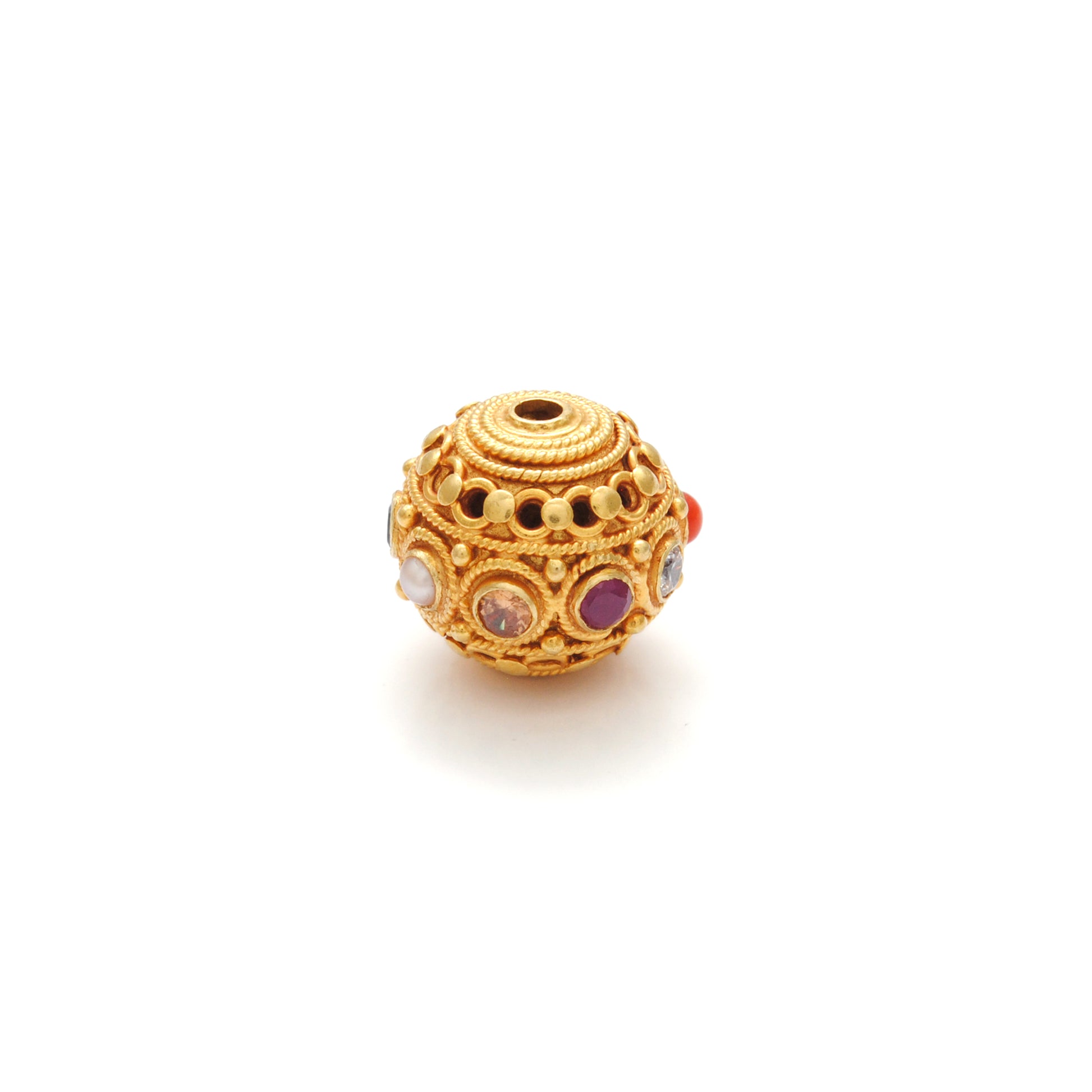 Add a touch of luxury and elegance to your jewelry designs with our Navratan Color Stone 18k Gold Spacer Beads. These 12.5MM Round beads are expertly crafted with premium-quality 18k gold and feature a stunning array of colorful gemstones.