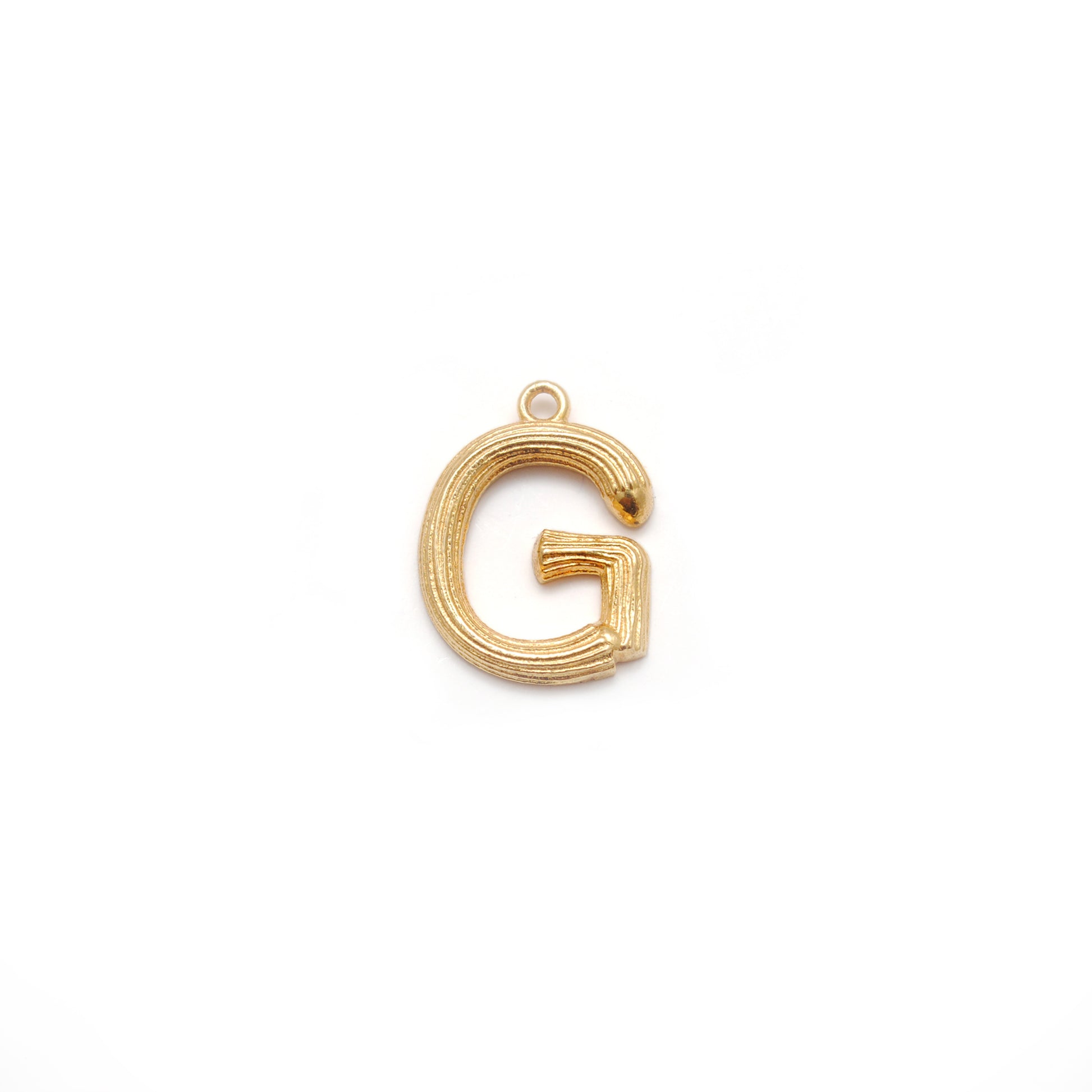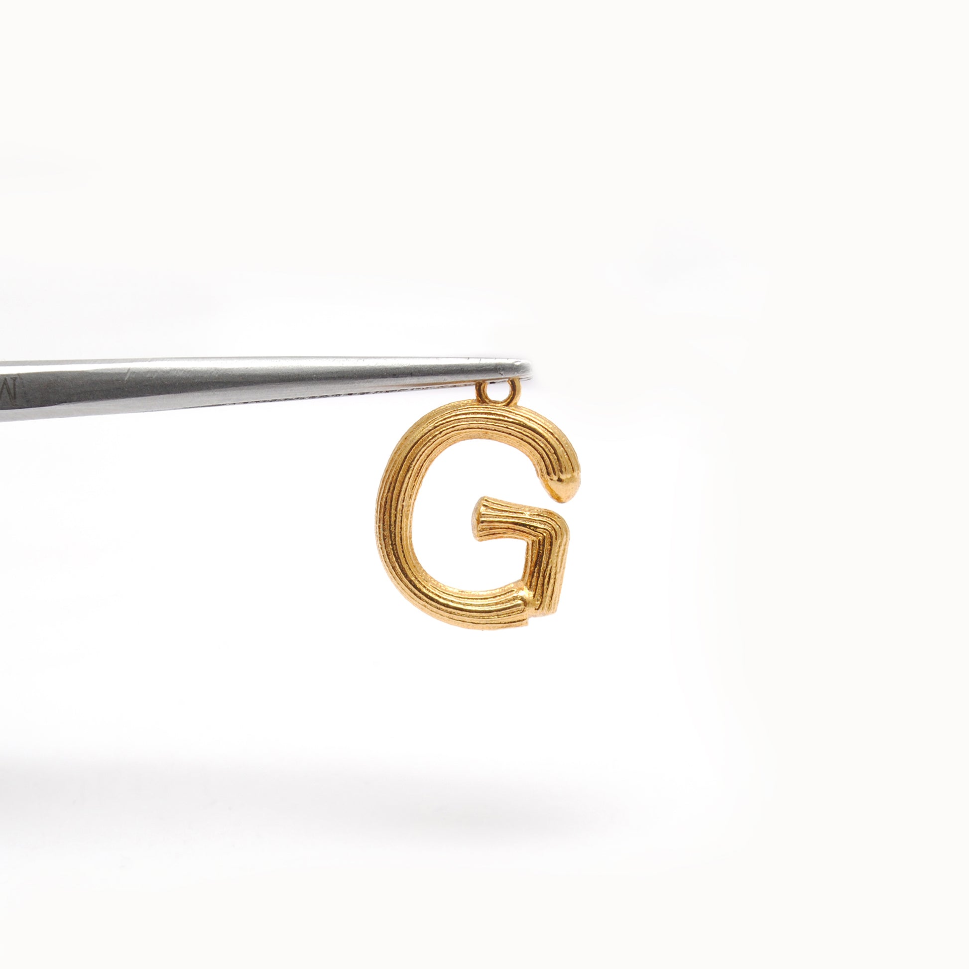 18k Solid Yellow Gold G Initial Letter Charm Pendant