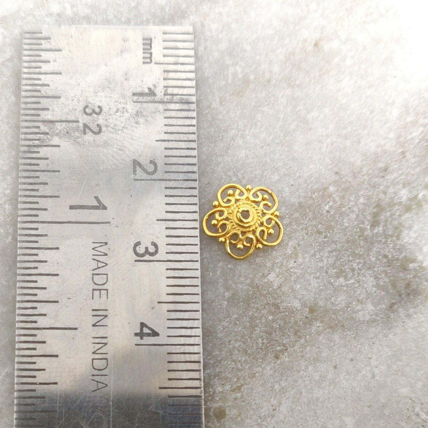 18k gold flower cap beads findings jewelry adds a touch of elegance to any outfit. Crafted with care and precision, these beads are made from high-quality materials, ensuring durability and long-lasting shine.
