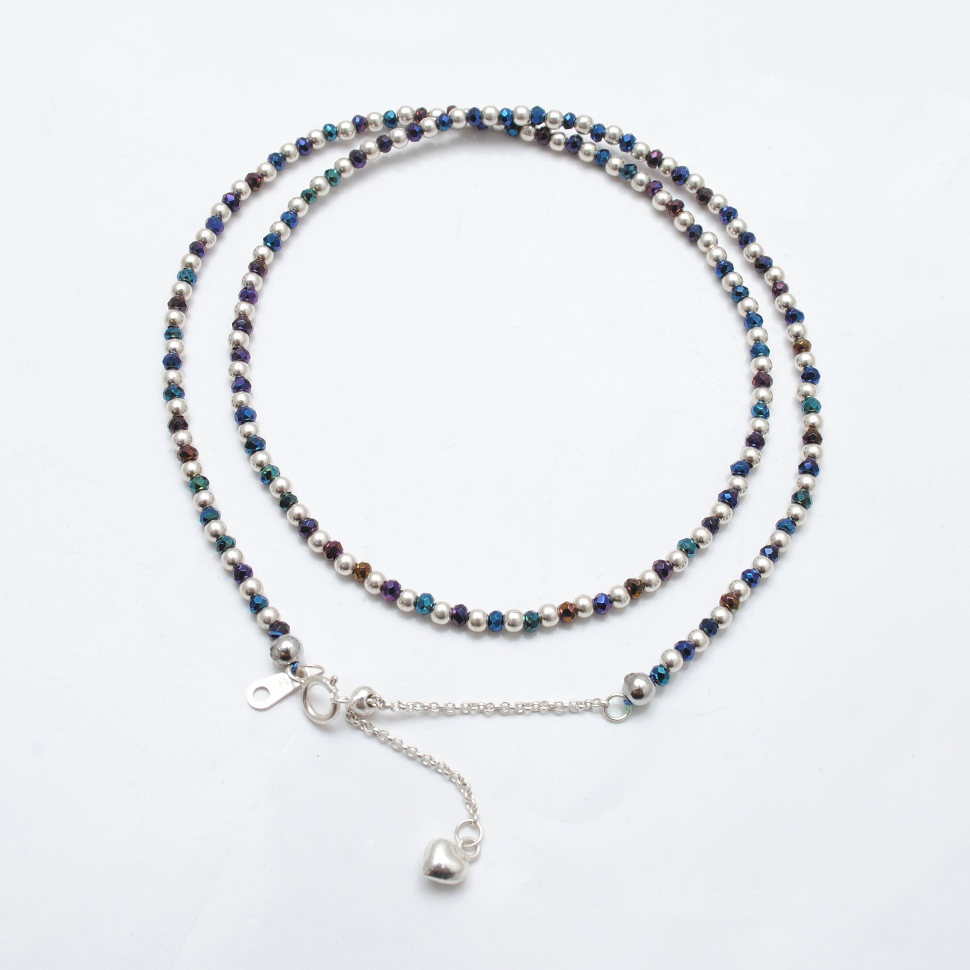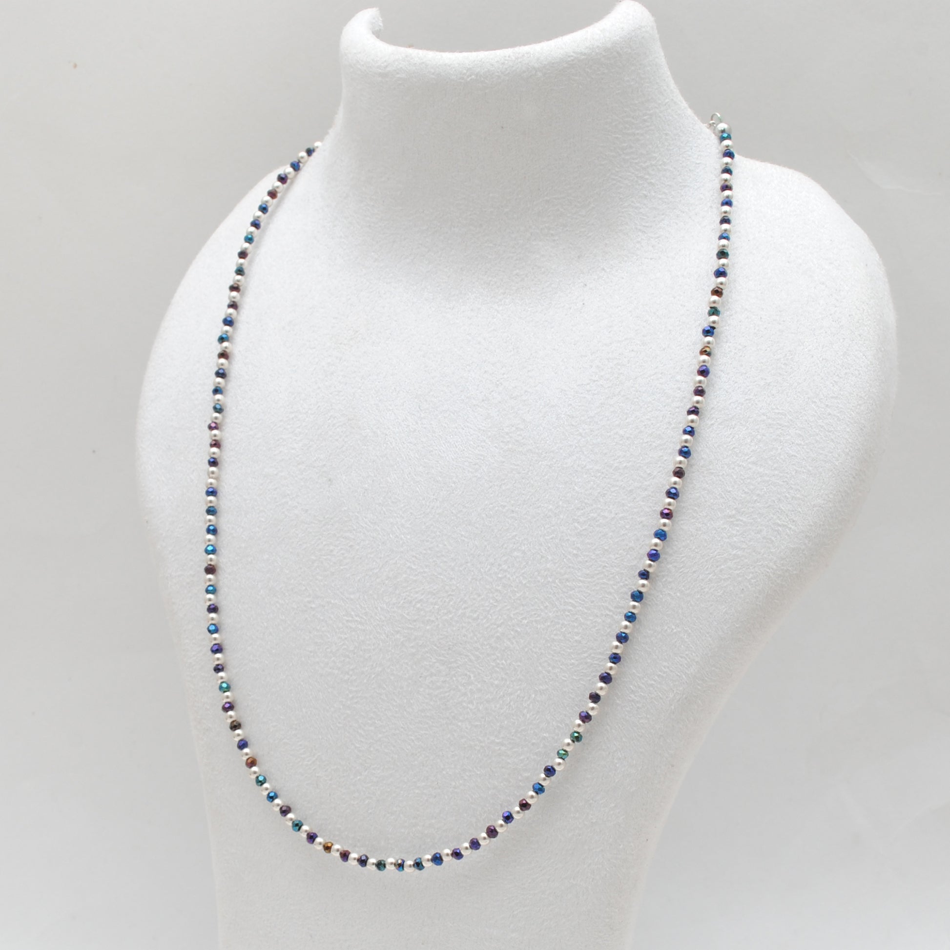 Black Spinel Blue Mystic Coated Silver Beaded Charm Necklace