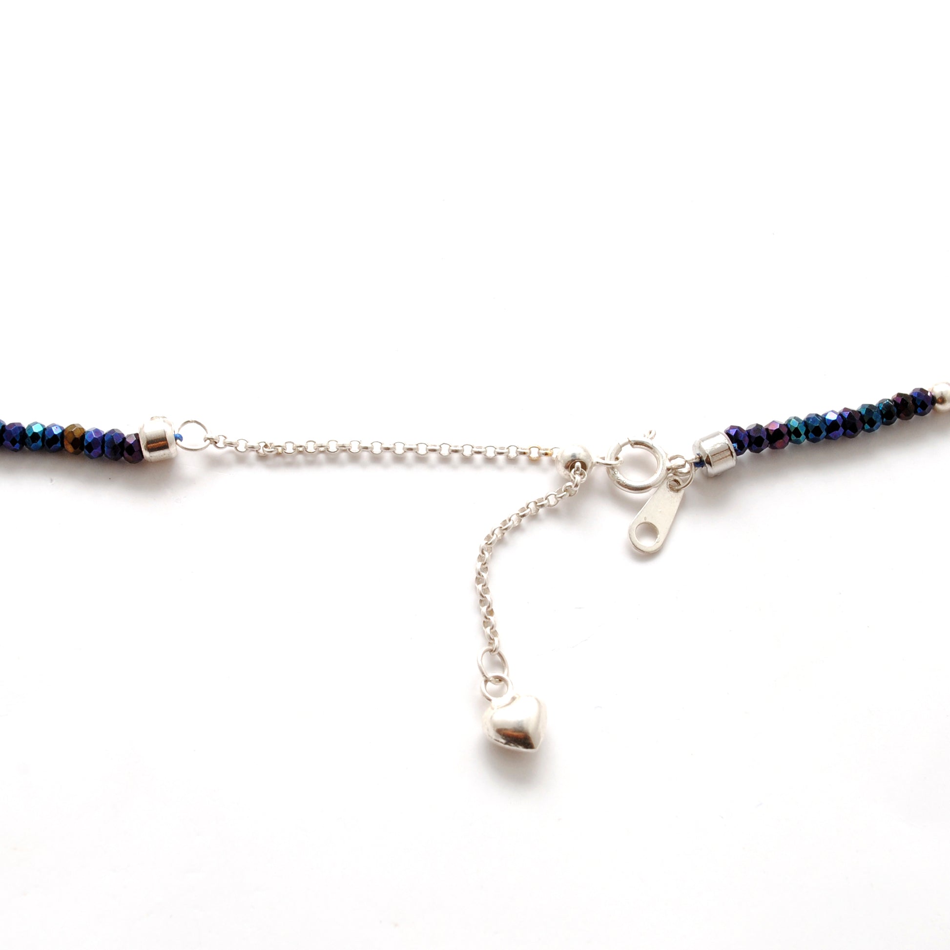 Expertly crafted and designed with precision, this necklace showcases stunning blue mystic coated faceted beads and a delicate silver charm. Made with quality materials, it adds a touch of elegance and sophistication to any outfit. Perfect for any occasion, it's a must-have addition to your jewelry collection.
