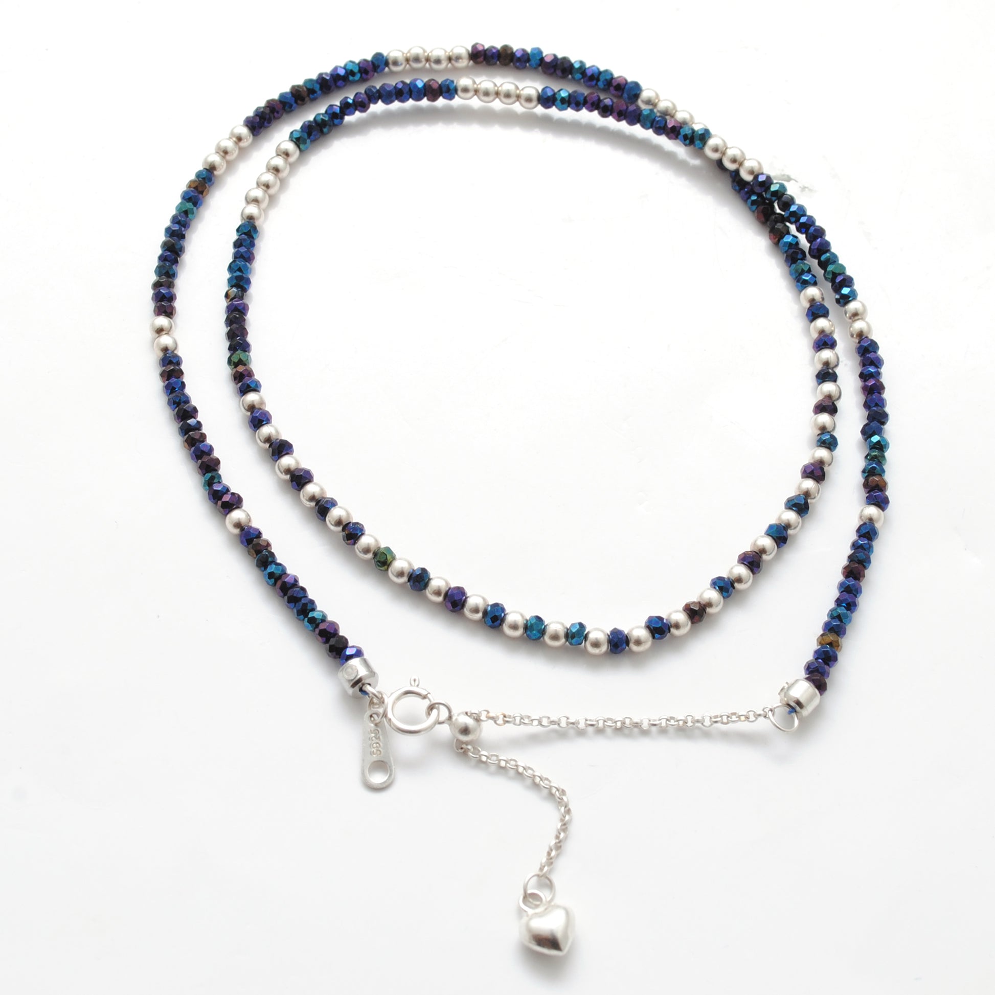 Blue Mystic Coated Faceted Beaded Silver Charm Necklace