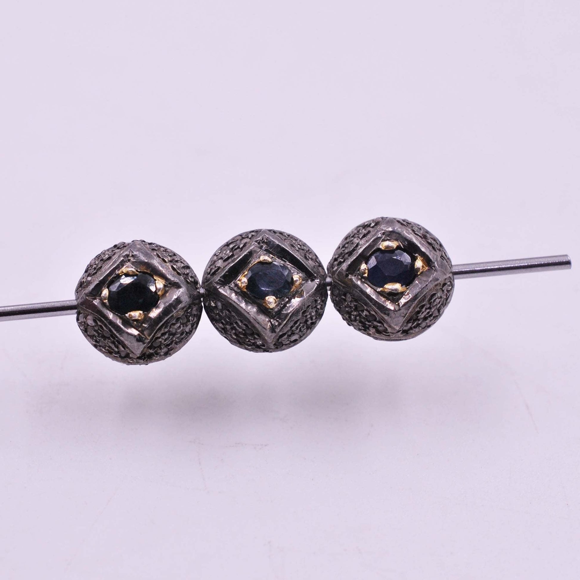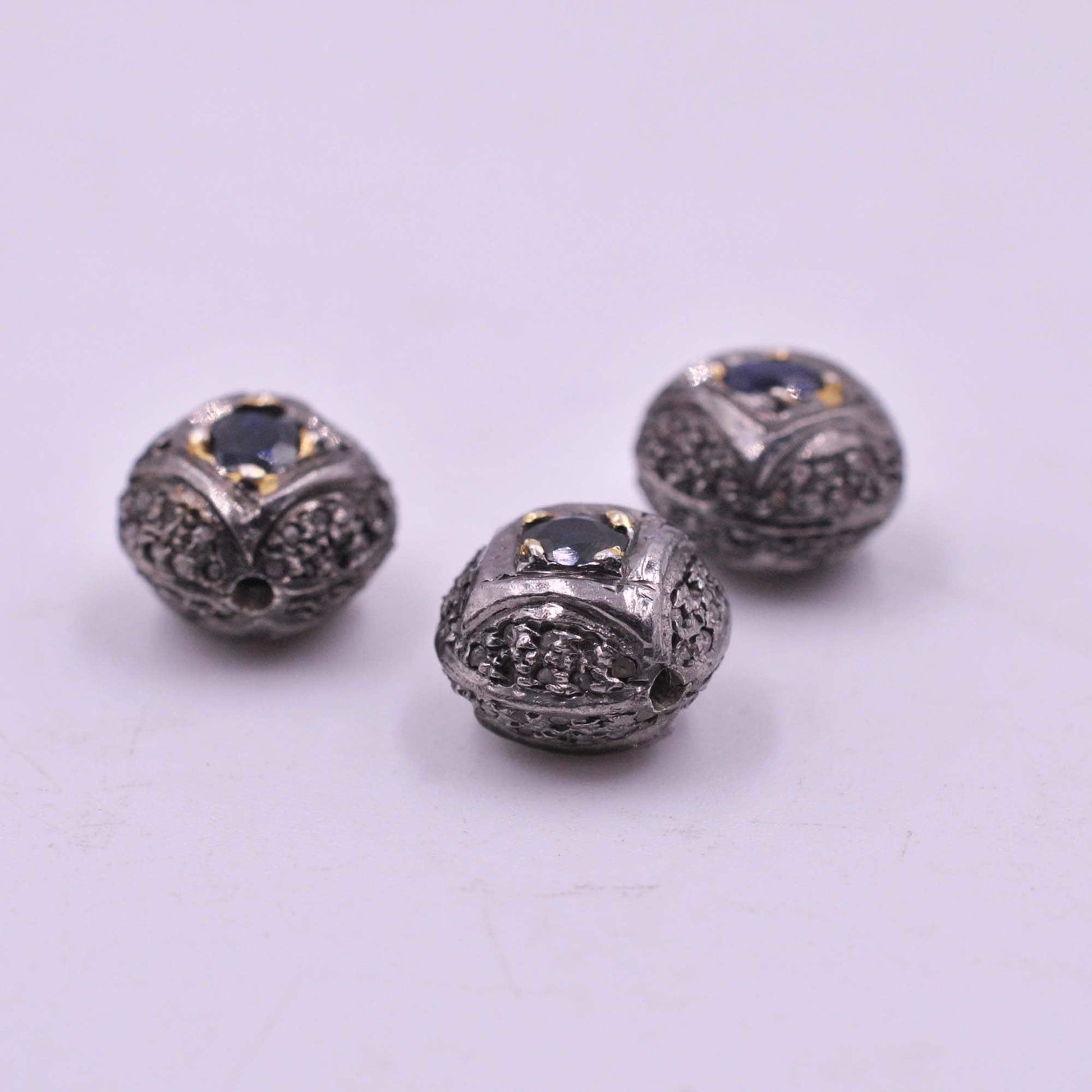 925 Sterling Silver Blue Sapphire & Pave Diamond Spacer Beads