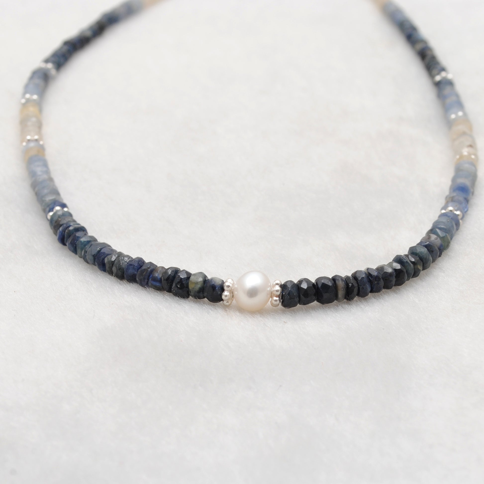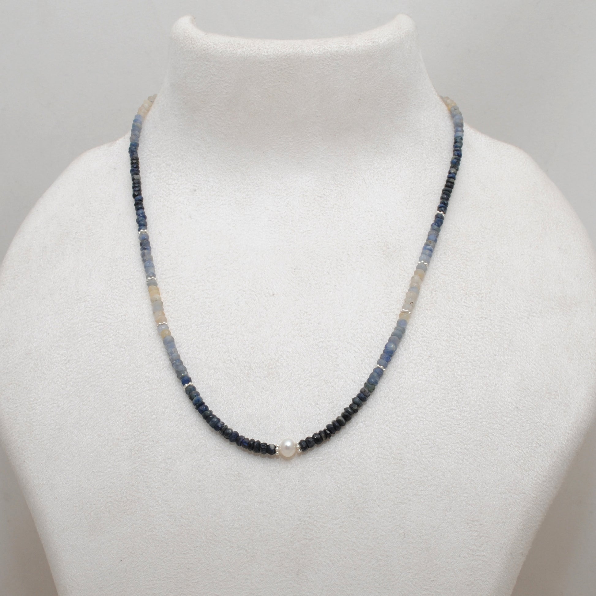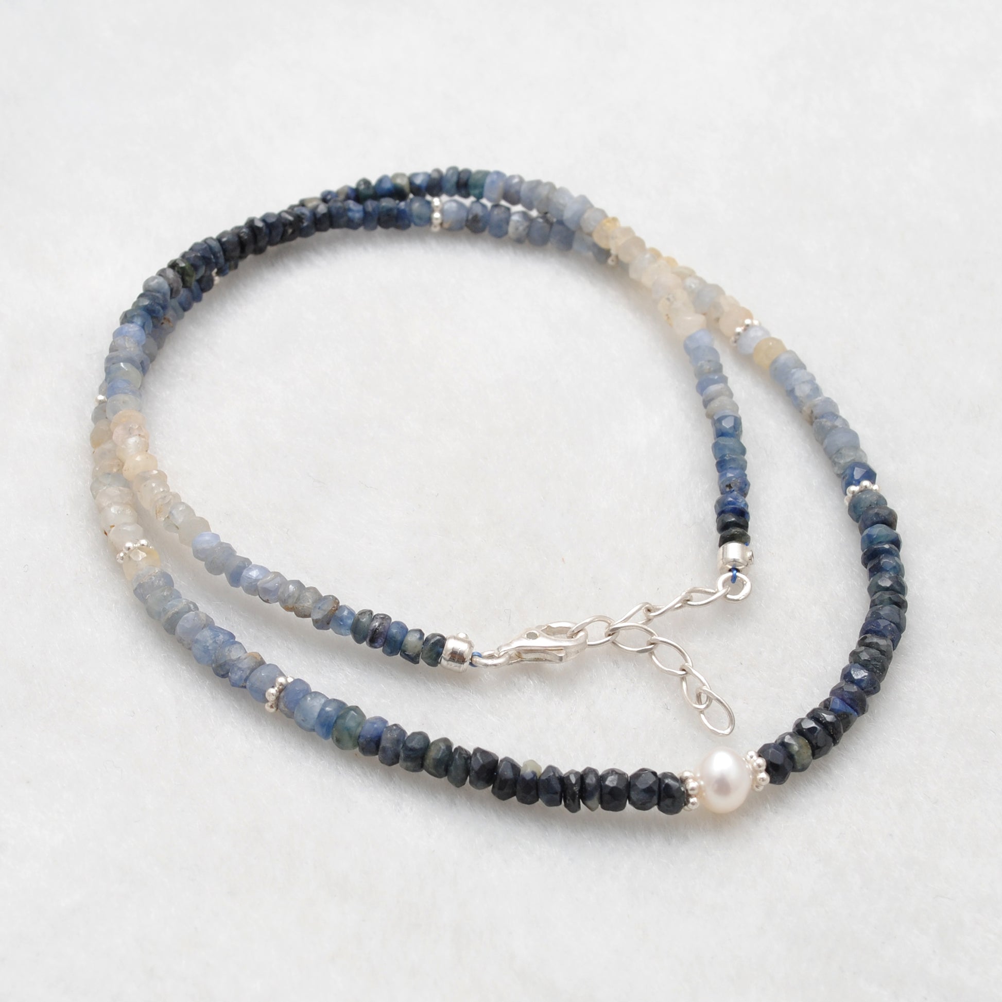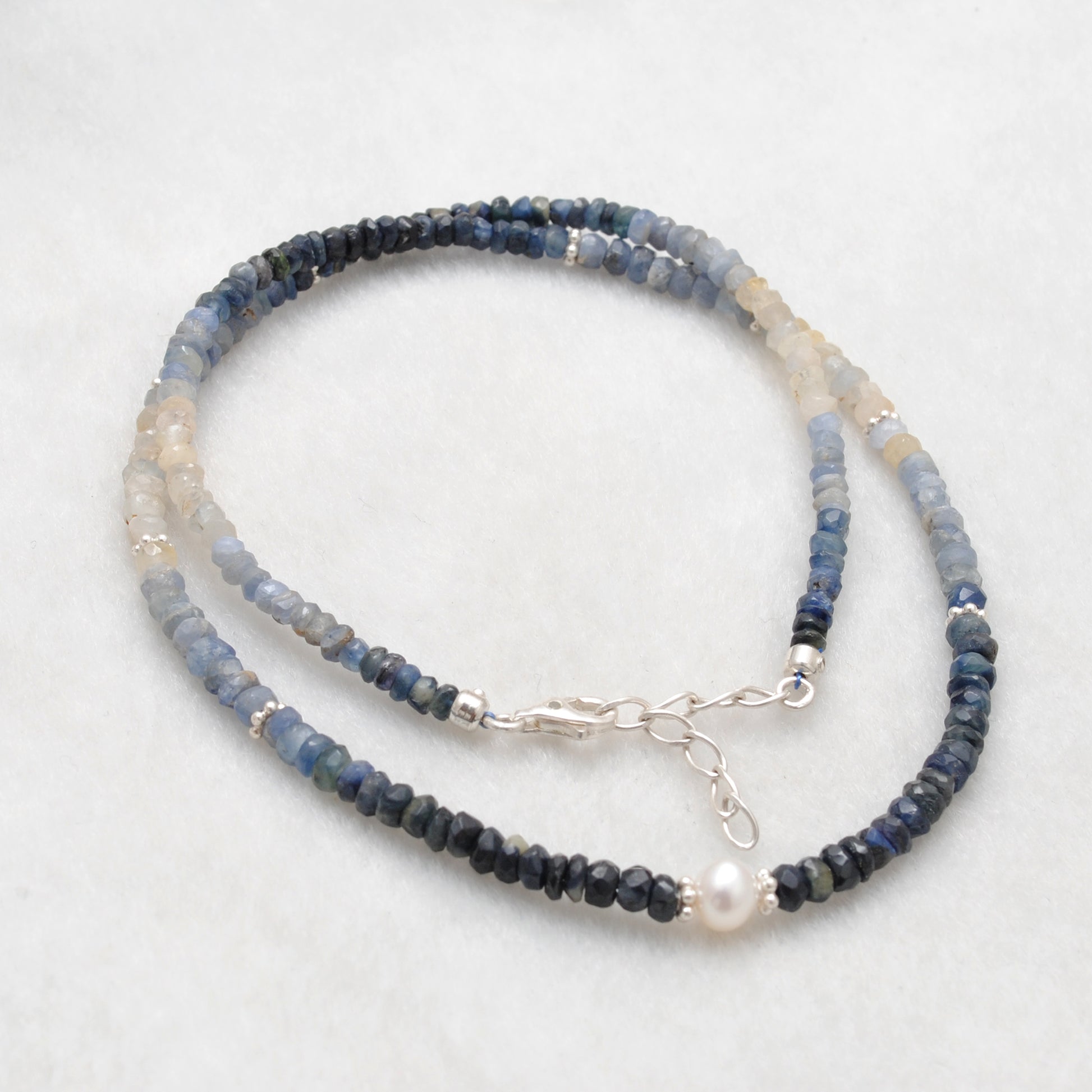 Elevate your elegance with this Shaded Blue Sapphire & Pearl Rondelle Faceted Beaded Necklace, handcrafted with natural sapphire gemstones and lustrous pearls, set in 925 Sterling Silver. Its timeless design makes it perfect for birthdays, anniversaries, or as a thoughtful gift for women.
