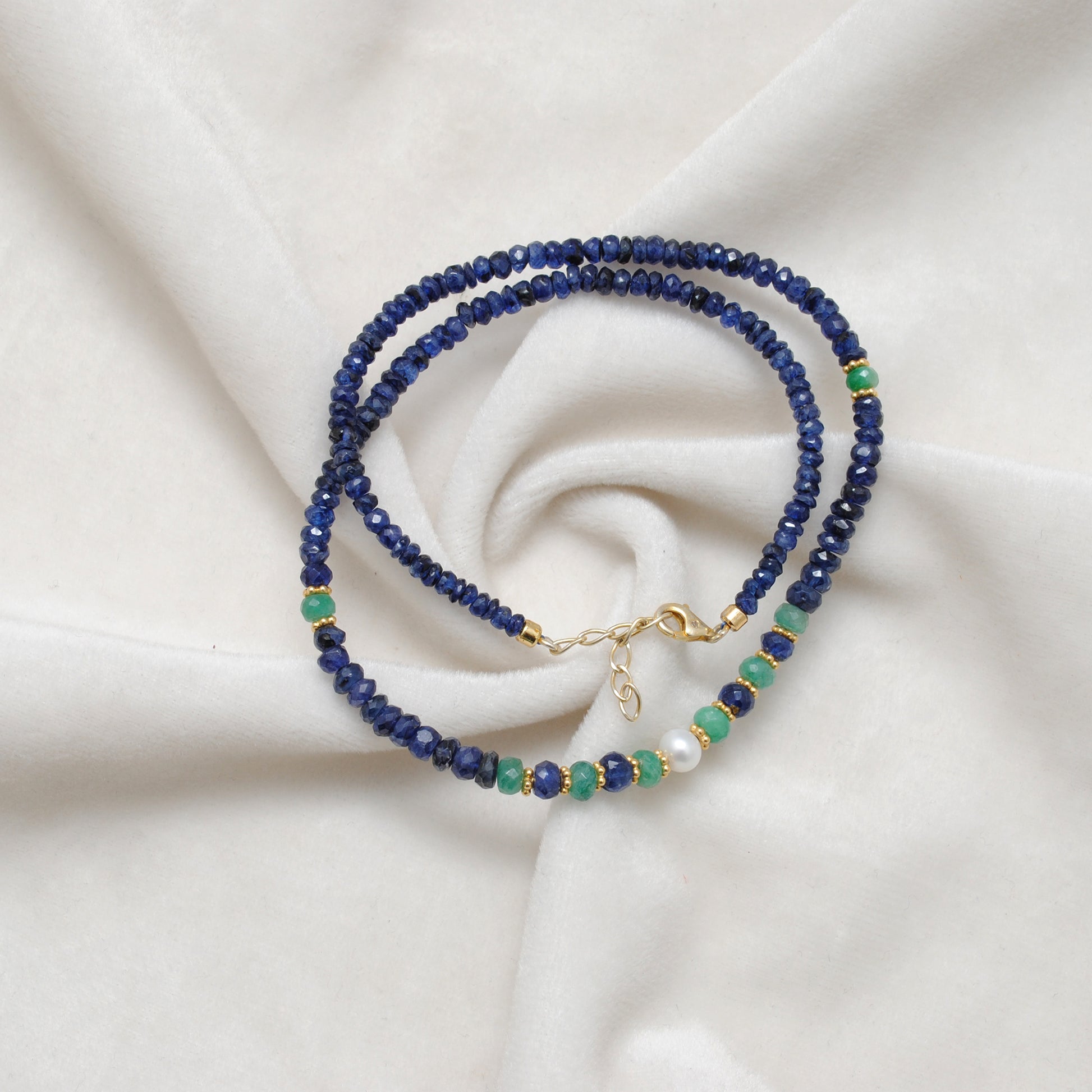 Elevate your elegance with this Faceted Emerald, Blue Sapphire & Pearl Beaded Necklace, handcrafted with natural gemstones and lustrous pearls set in 925 Sterling Silver. Its timeless design makes it perfect for birthdays, anniversaries, weddings, or as a thoughtful gift for women.