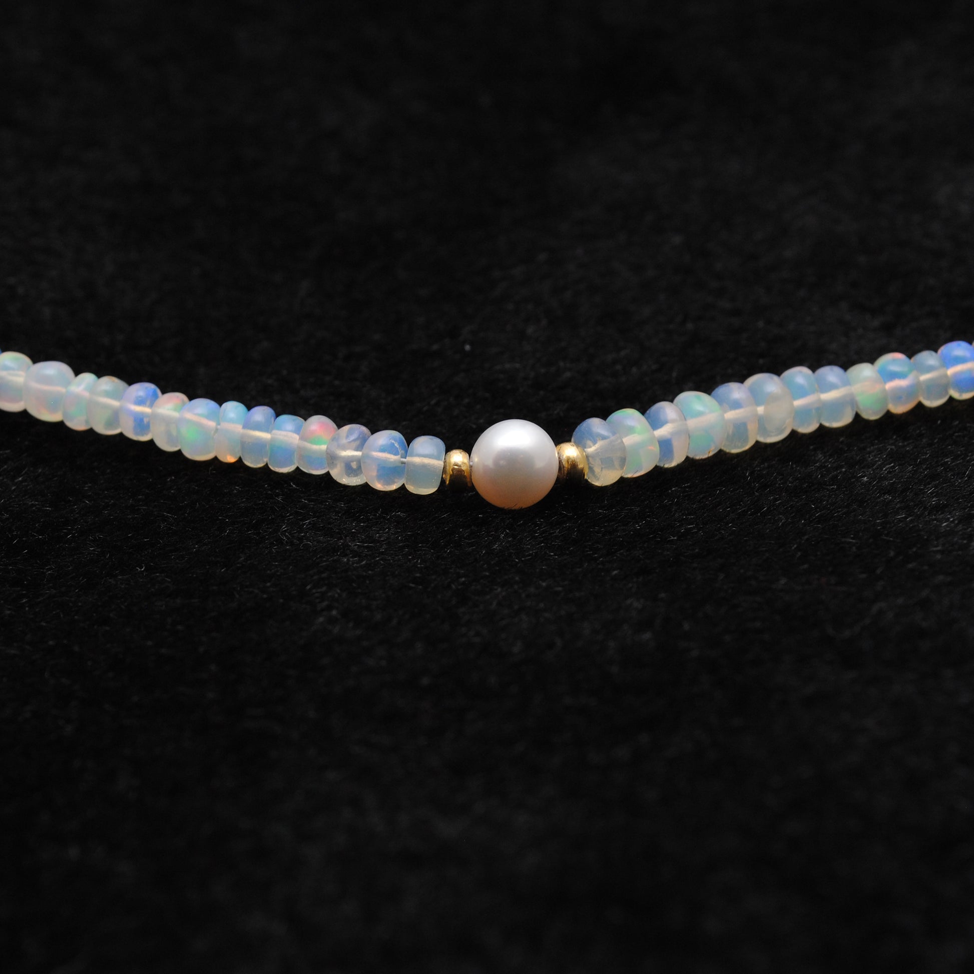 925 Sterling Silver Opal & Freshwater Pearl Beaded Necklace,
