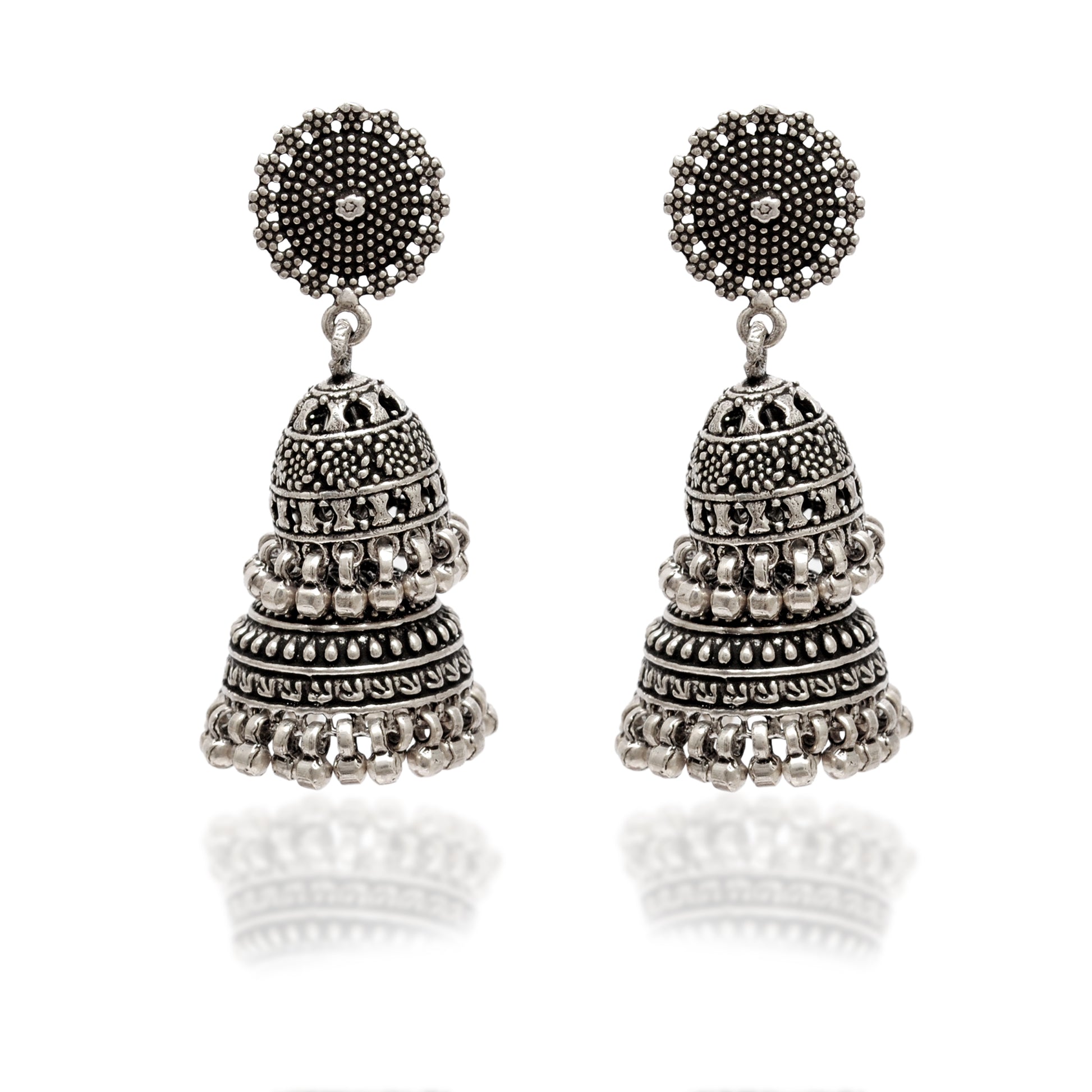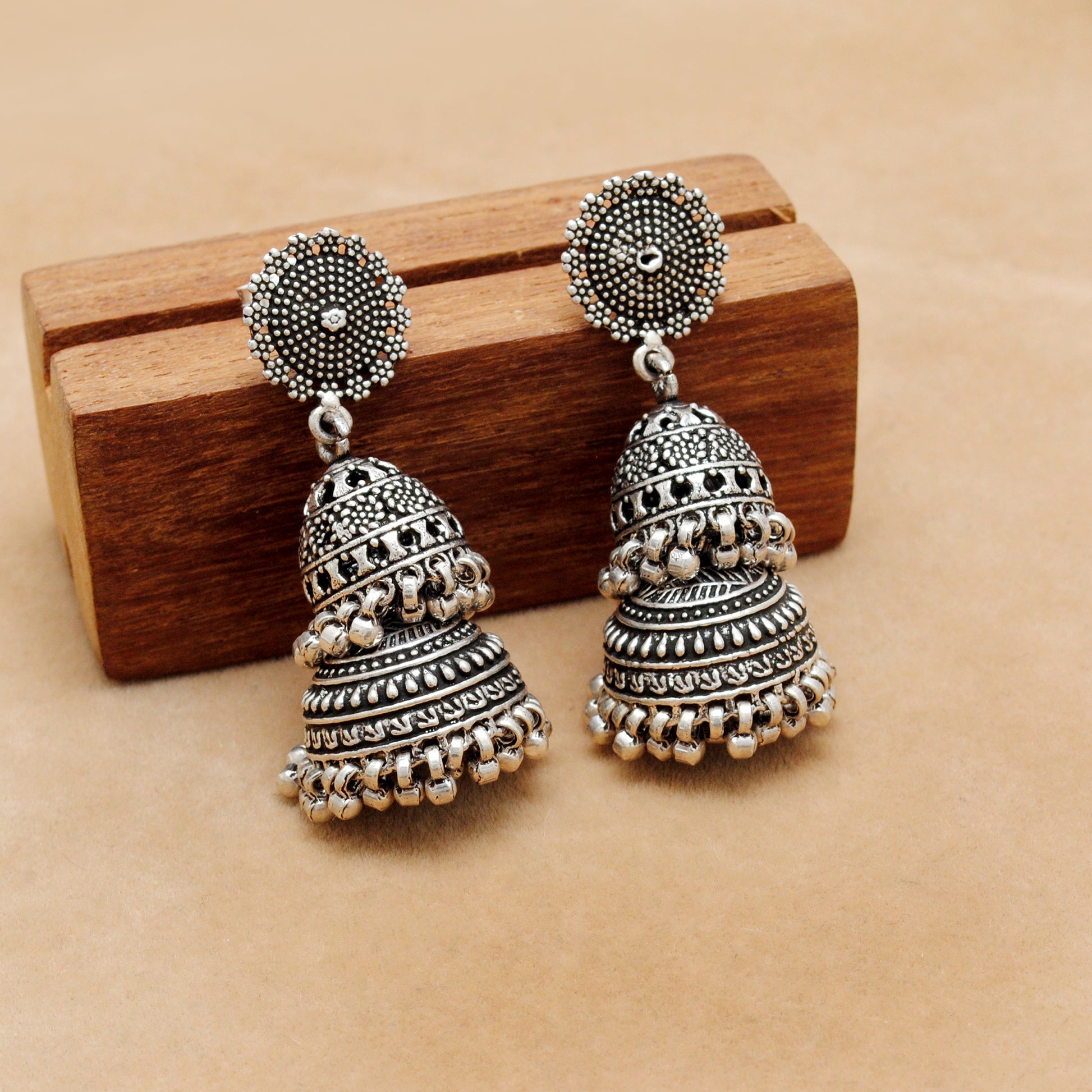 Elevate her jewelry collection with these 925 Sterling Silver Oxidized Dangle Earrings, designed in a timeless vintage style. Featuring intricate detailing and a graceful oxidized finish, they’re the perfect accessory for festive wear, ethnic outfits, or as a classic gift for any special occasion.