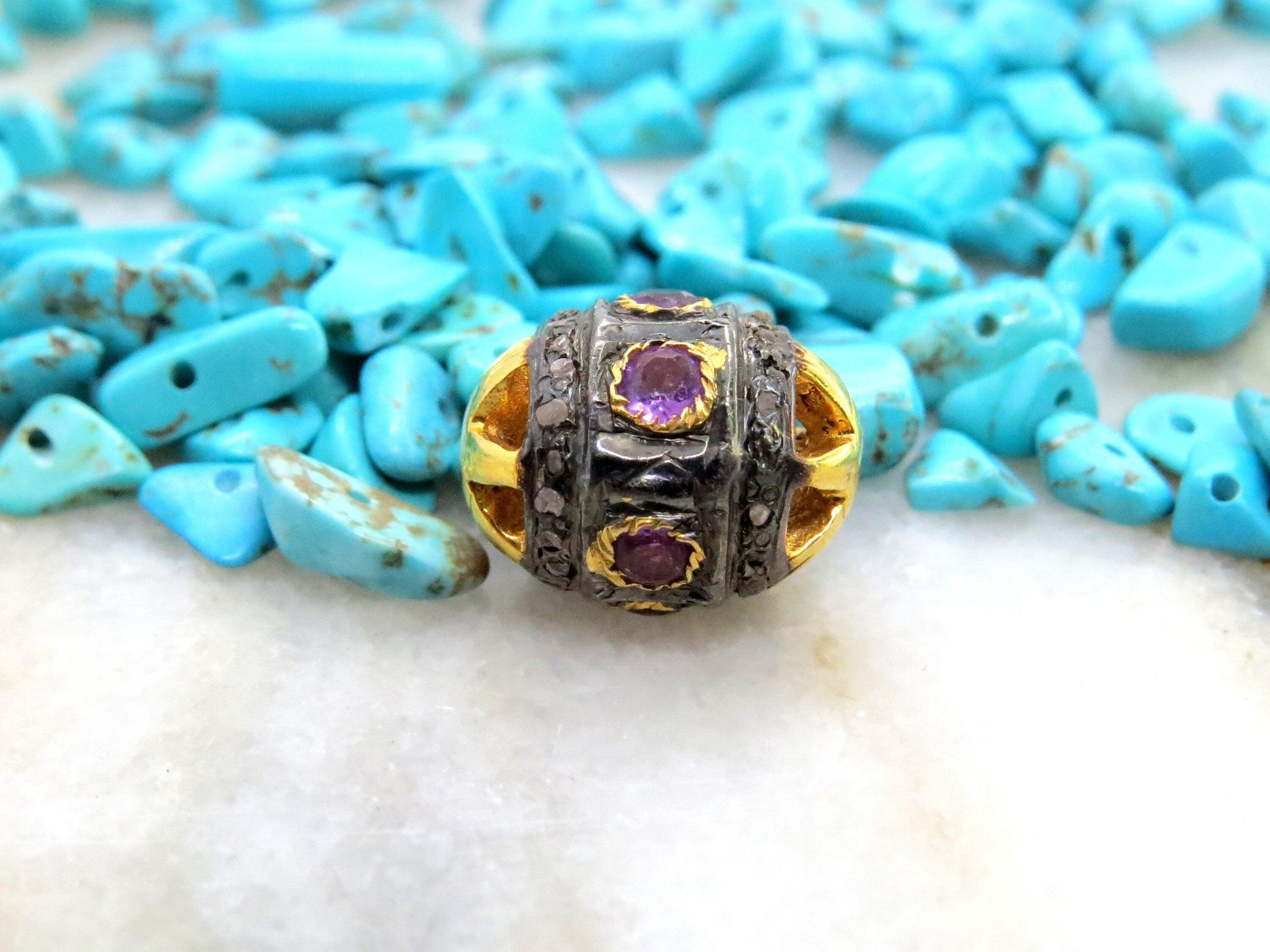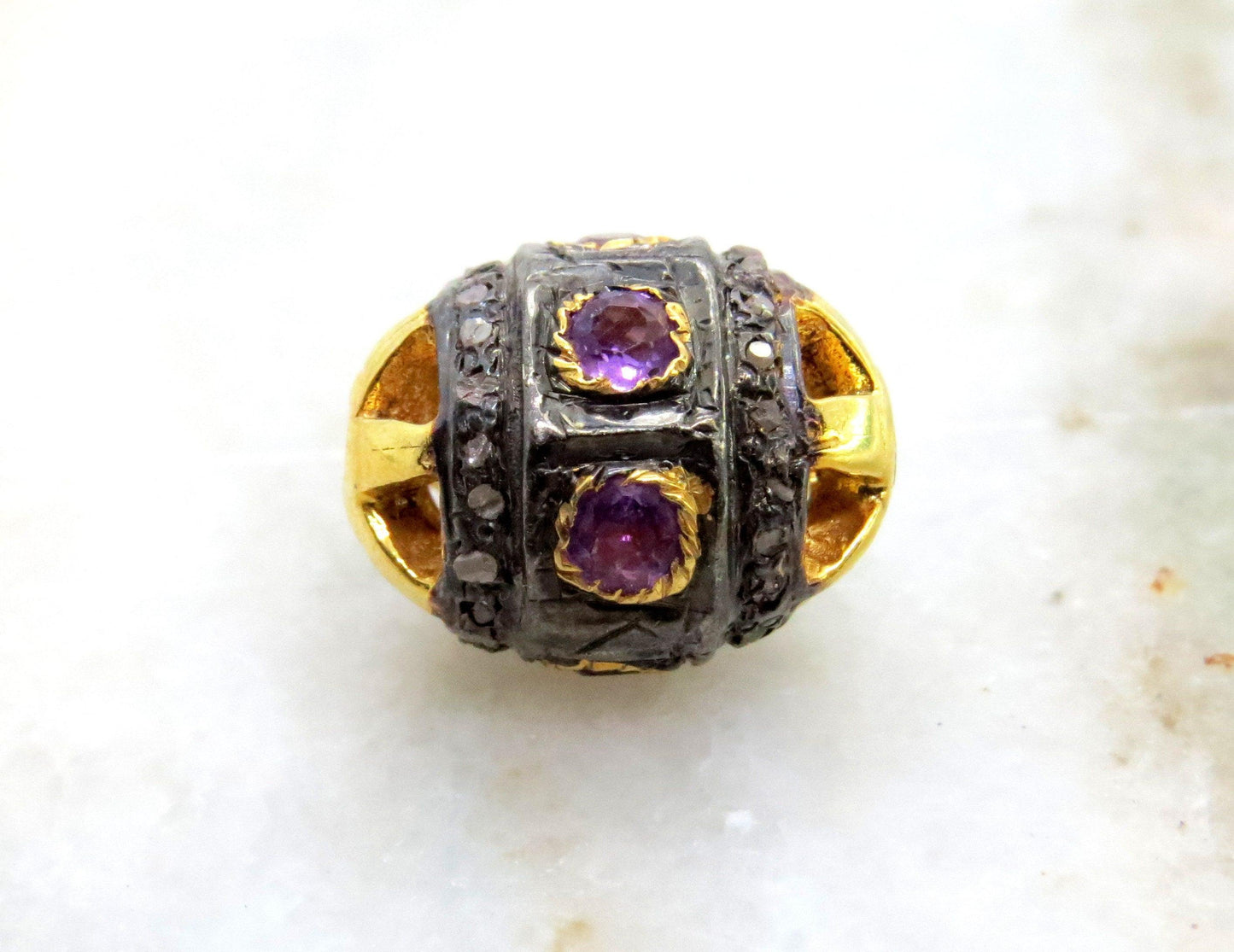 925 Sterling Silver Pave Diamond & Amethyst Spacer Ball Beads