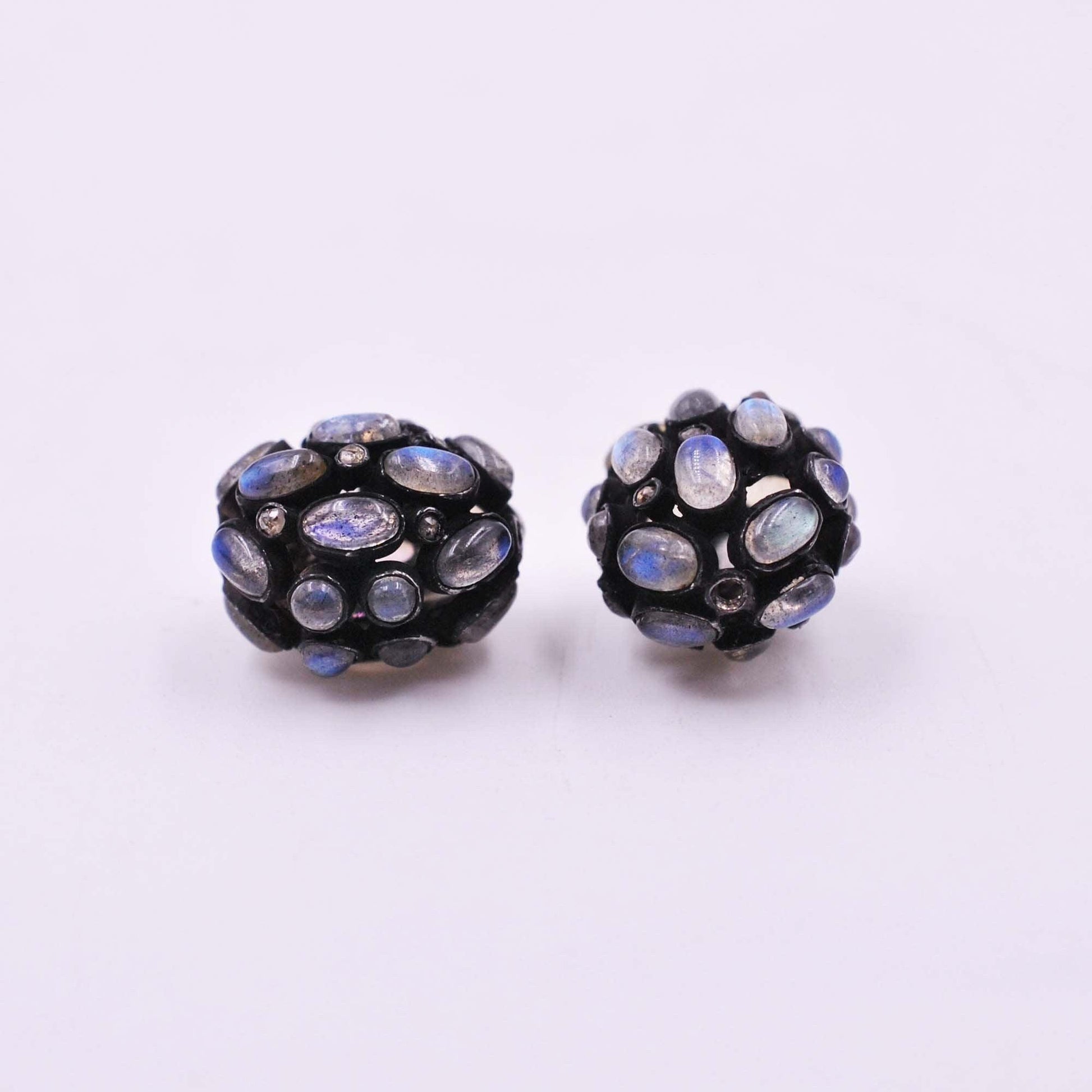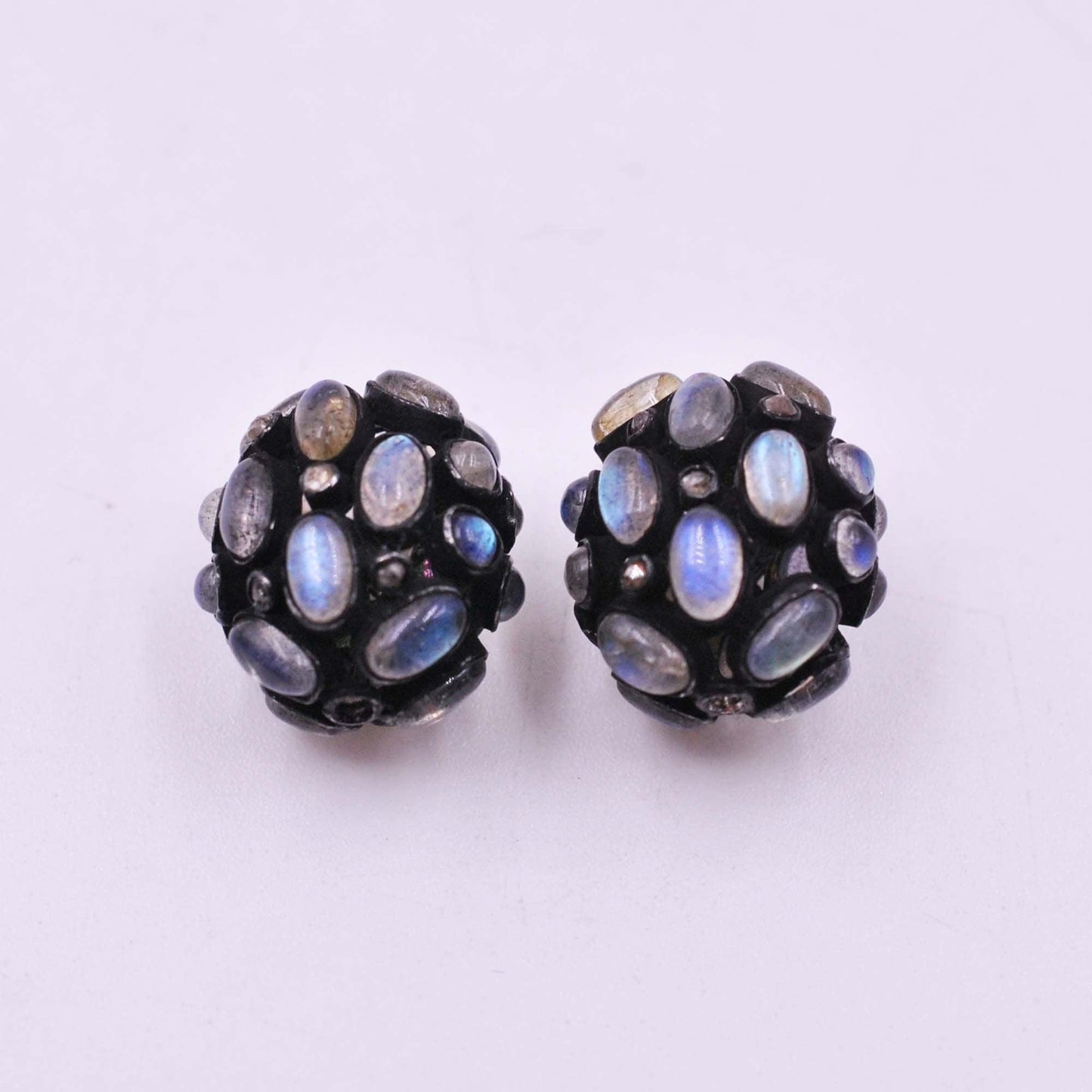 925 Sterling Silver Pave Diamond & Labradorite Beads