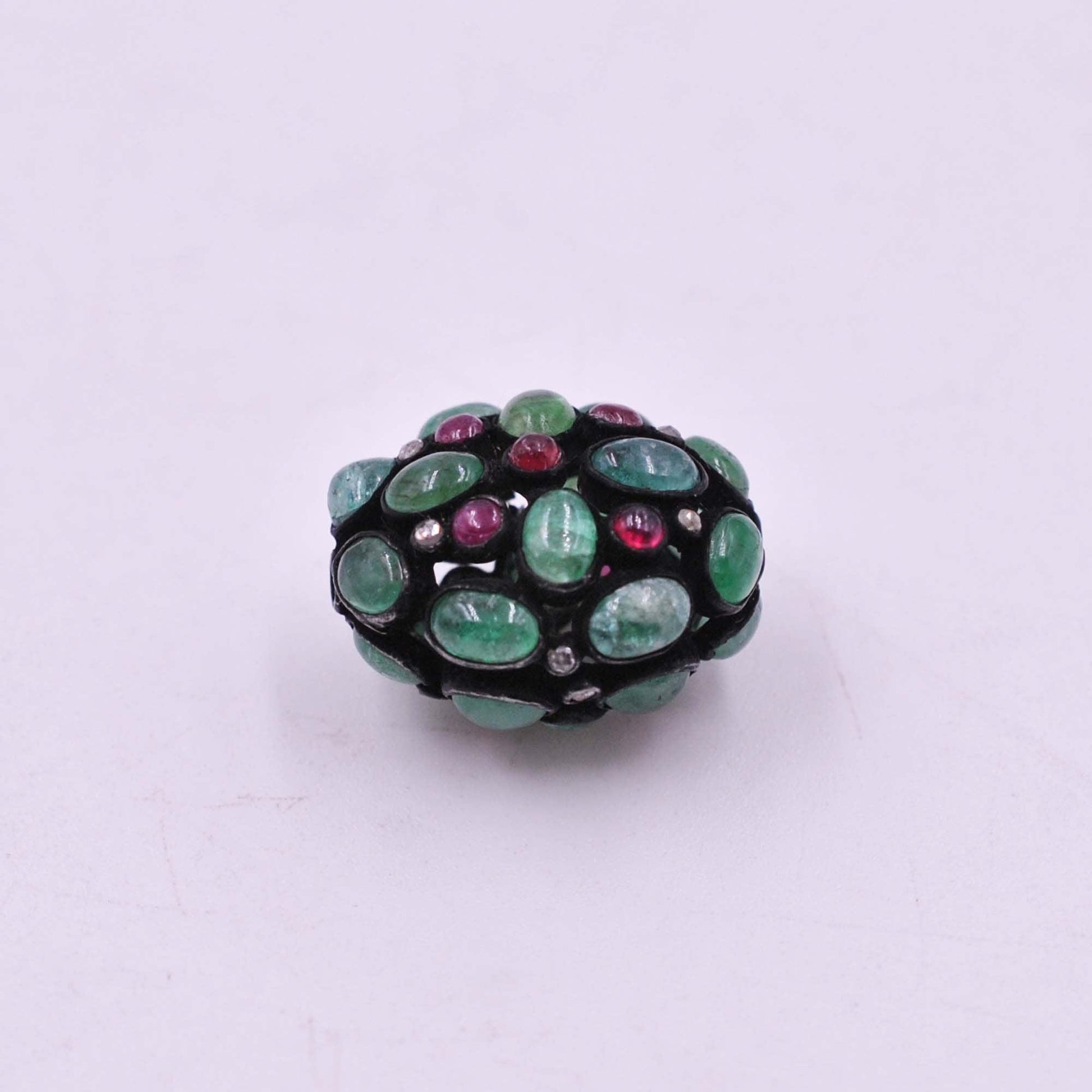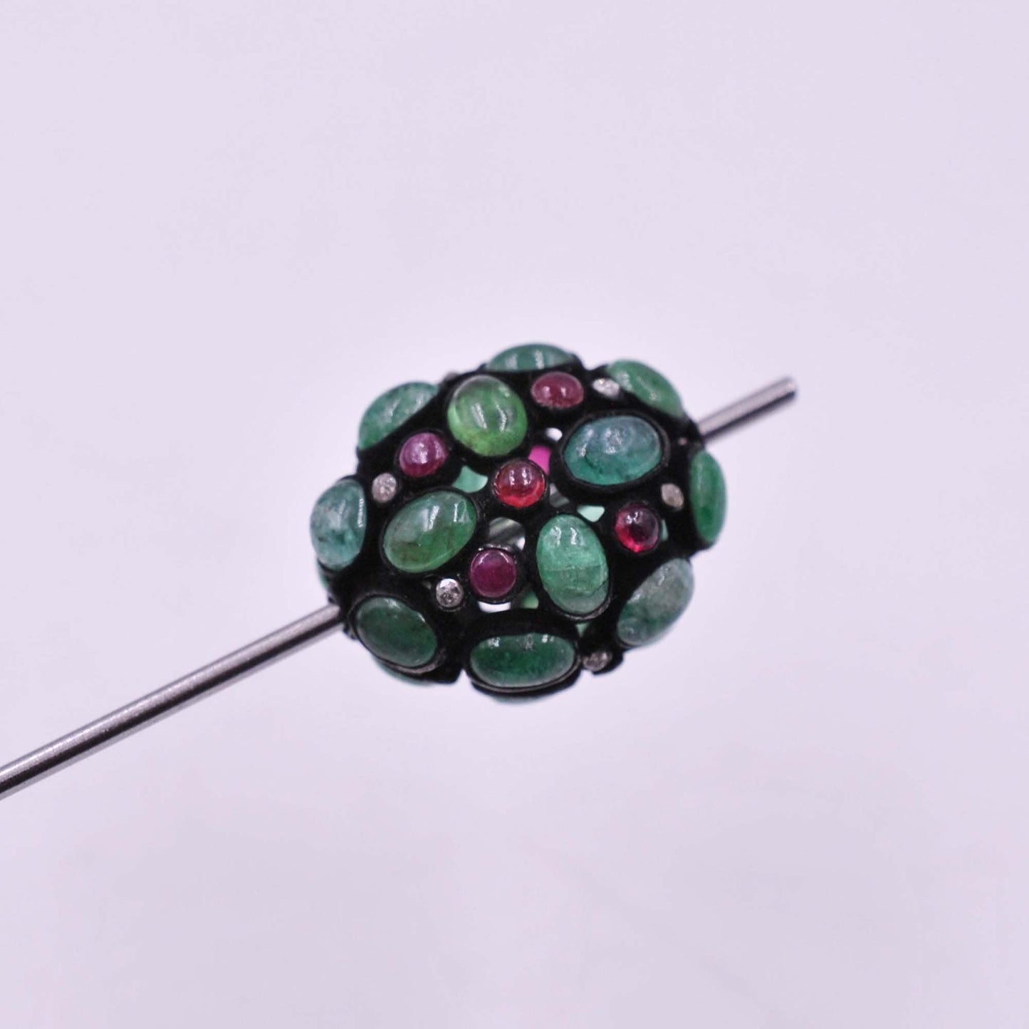 925 Sterling Silver Pave Diamond with Ruby & Emerald Beads