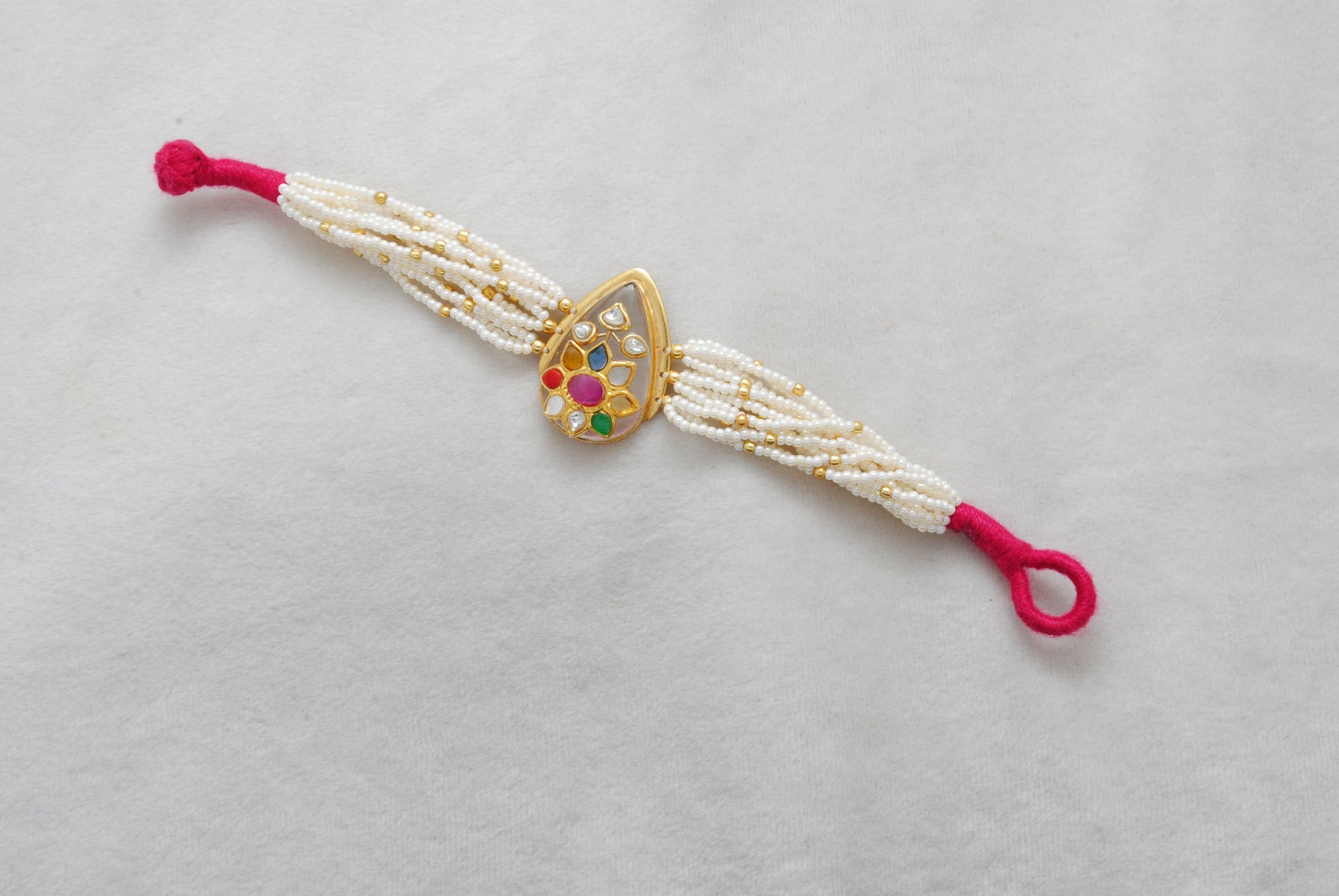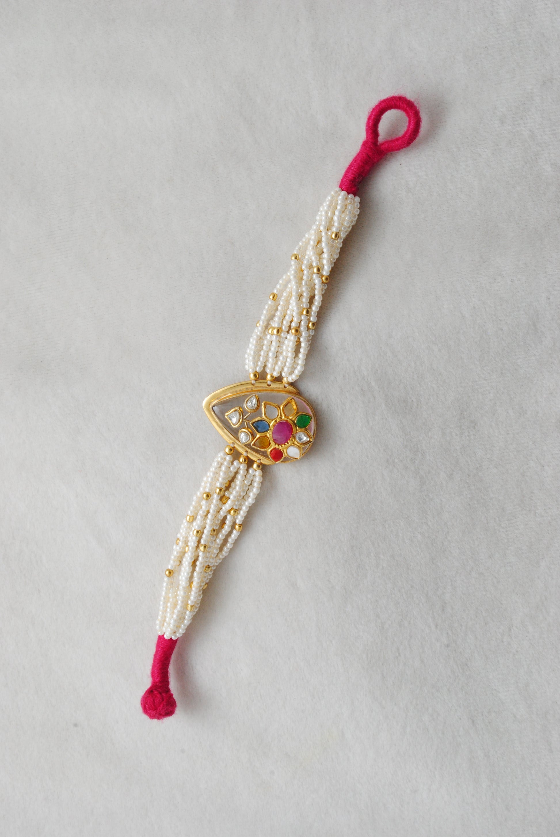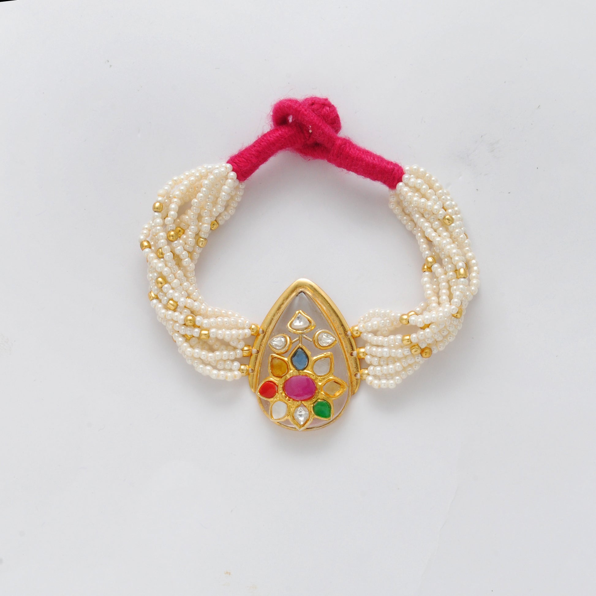 925 Sterling Silver Pearl Beaded Bracelet with Multi-Gemstone with Thread Knot Closure