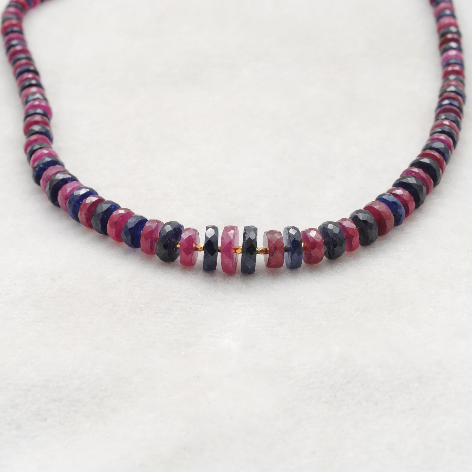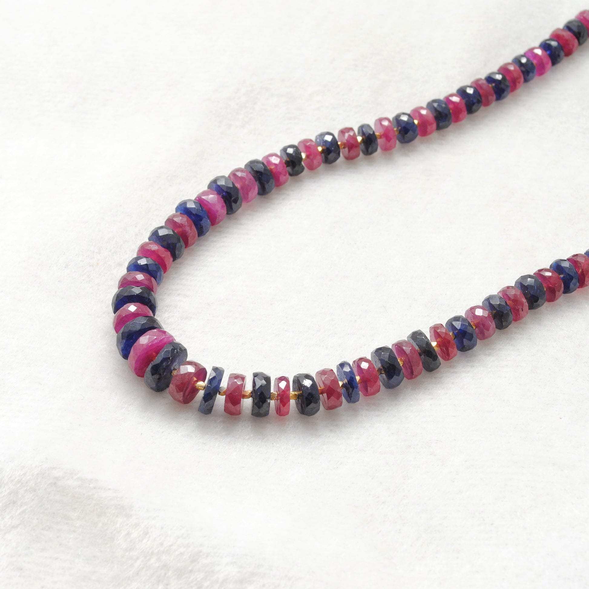 925 Sterling Silver Ruby & Sapphire Beaded Necklace – Gift for Her