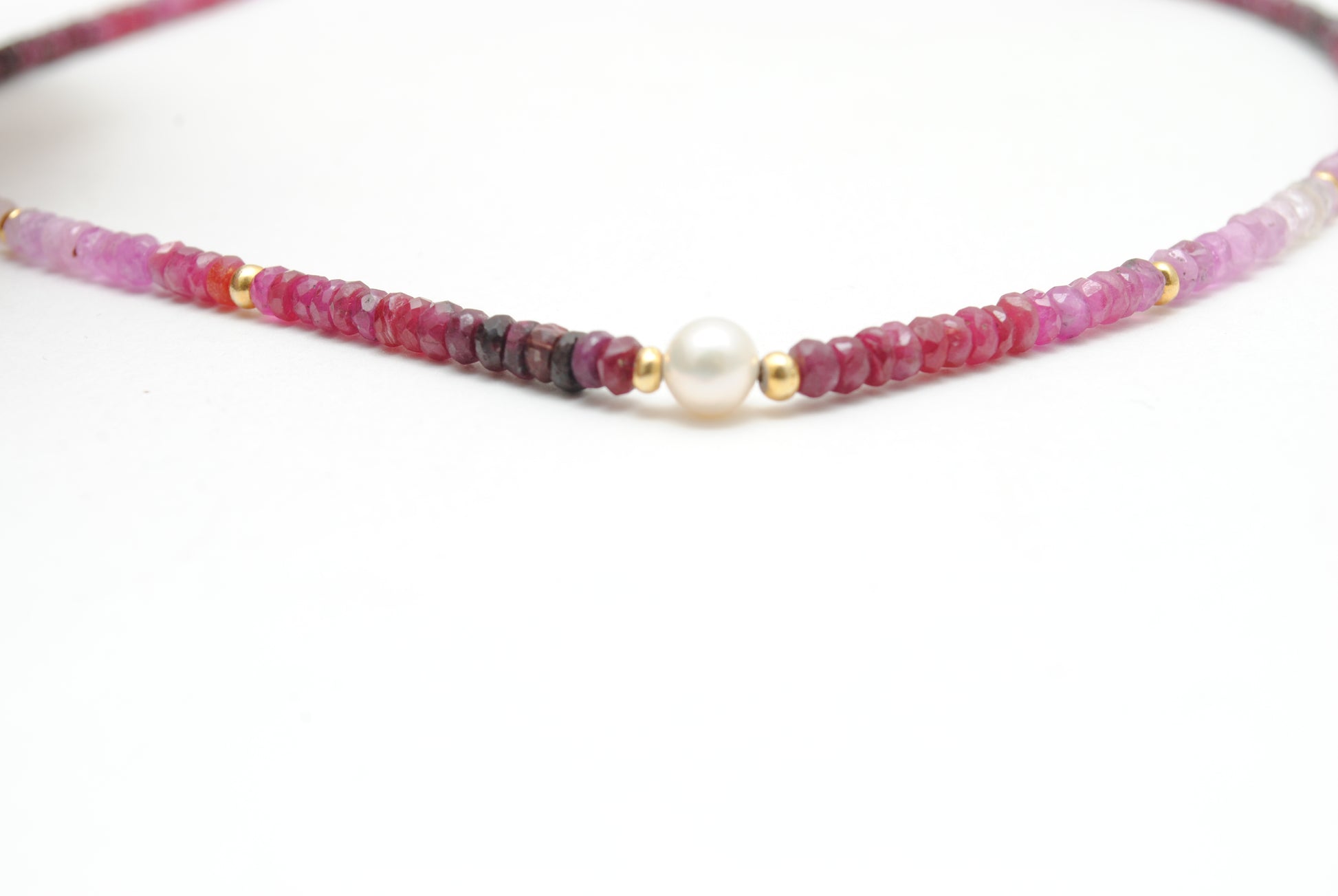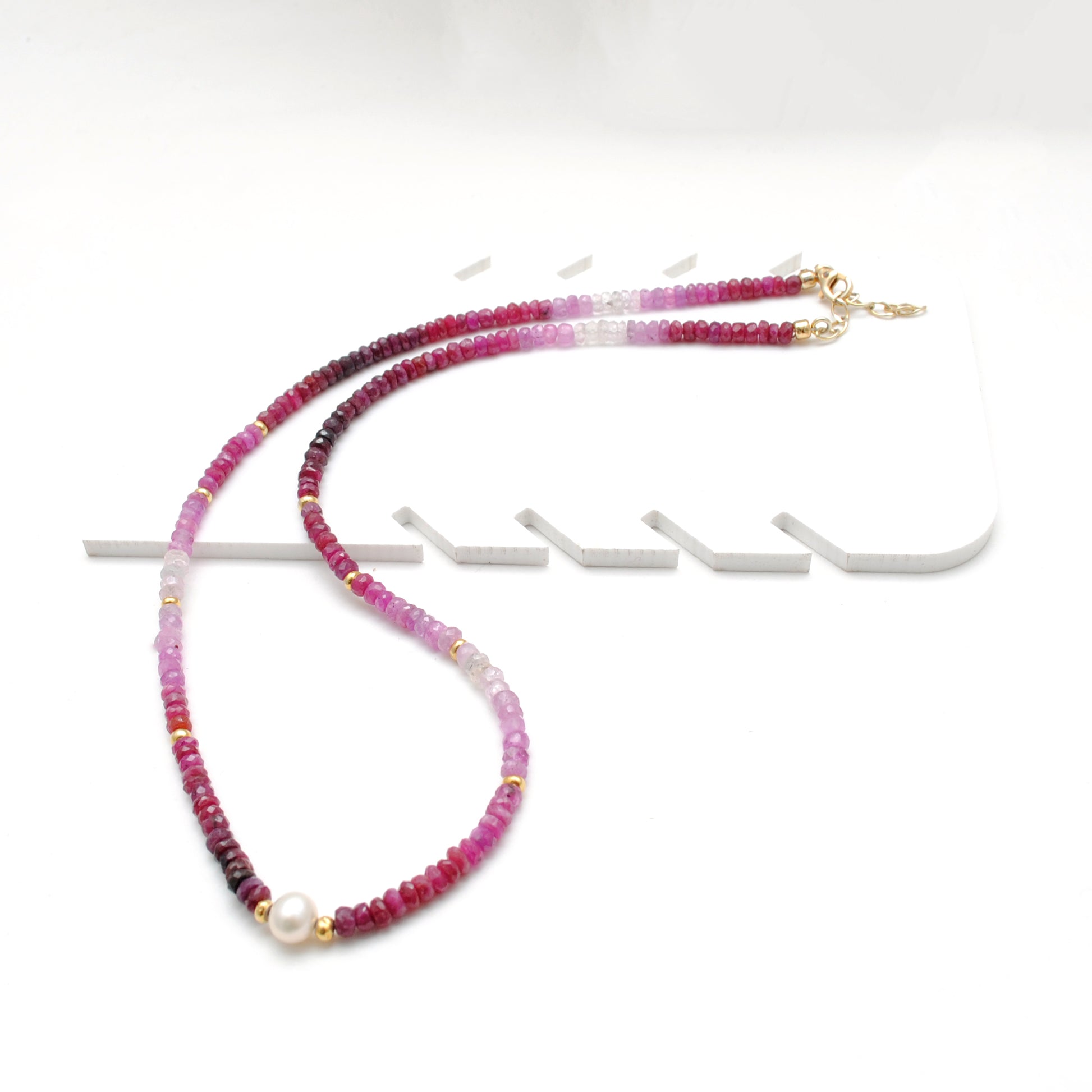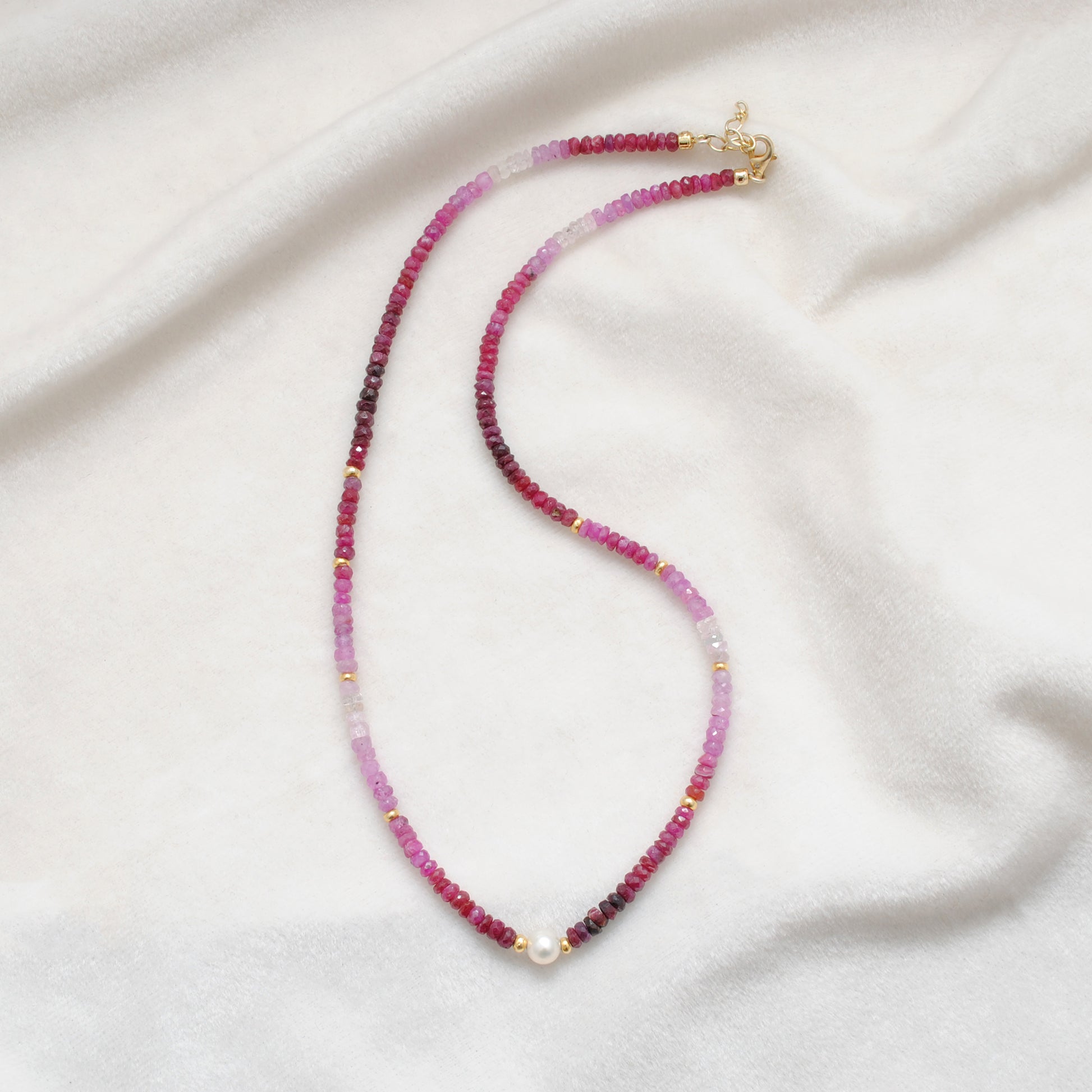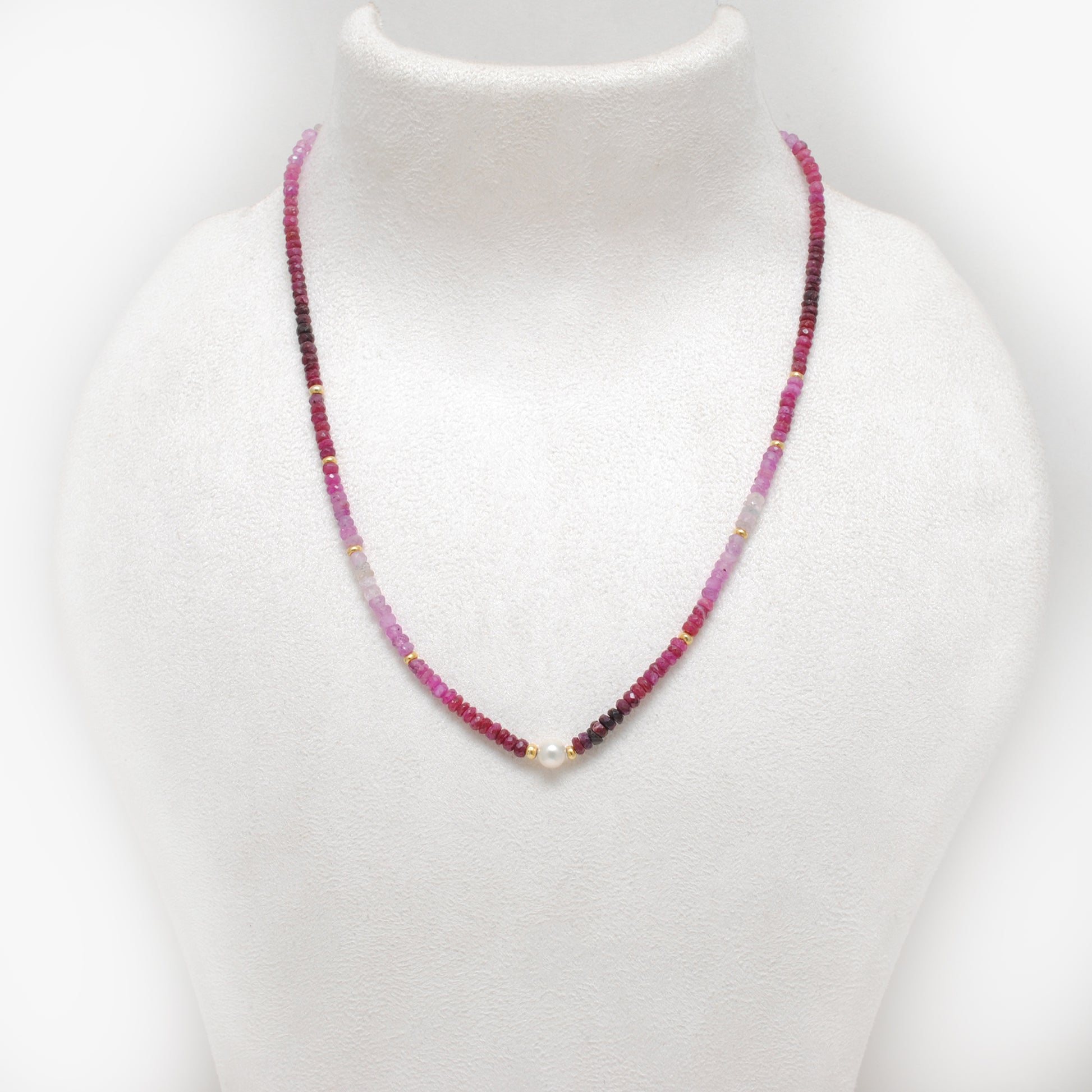 Add a touch of elegance with this Shaded Ruby Rondelle Faceted Beaded Necklace, featuring natural ruby beads and lustrous pearls set in 925 Sterling Silver. Handcrafted with precision, it’s perfect for birthdays, anniversaries, or any special occasion.