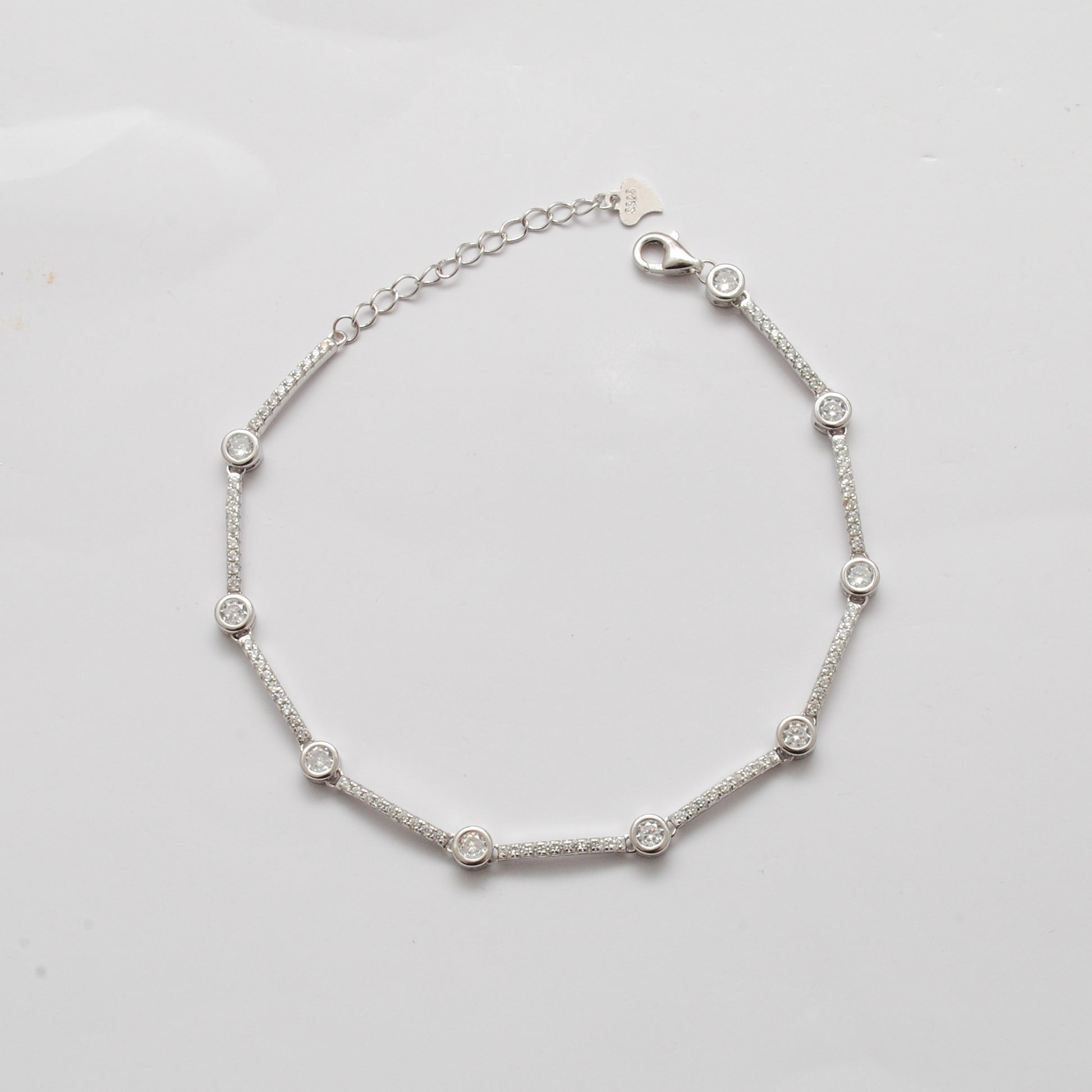 Add a refined sparkle to your everyday look with this Minimalist CZ Chain Bracelet, crafted in genuine 925 sterling silver. Featuring delicate cubic zirconia stones embedded in a sleek chain design, this 8-inch bracelet offers subtle elegance and timeless charm. Lightweight and comfortable, it's perfect for layering or wearing solo.