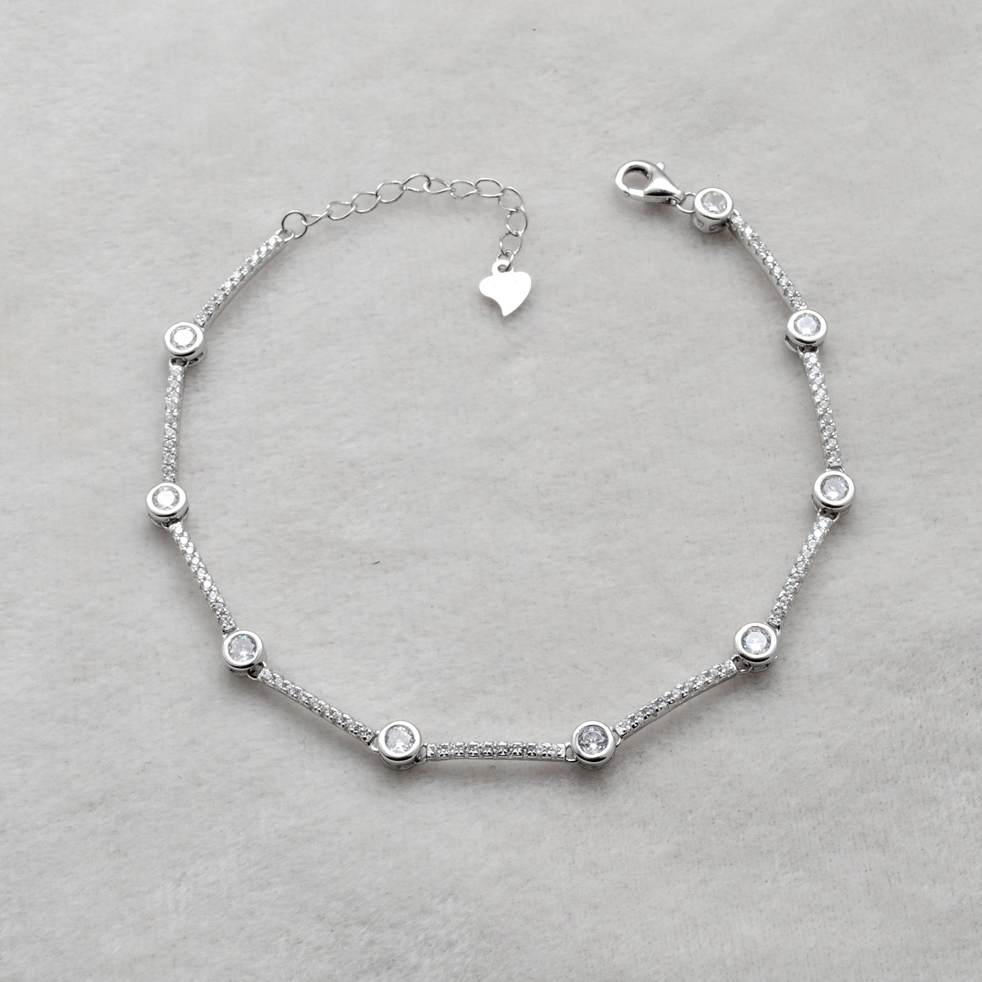 Minimalist CZ Chain Bracelet – 925 Sterling Silver, 8 Inch Gift for Her