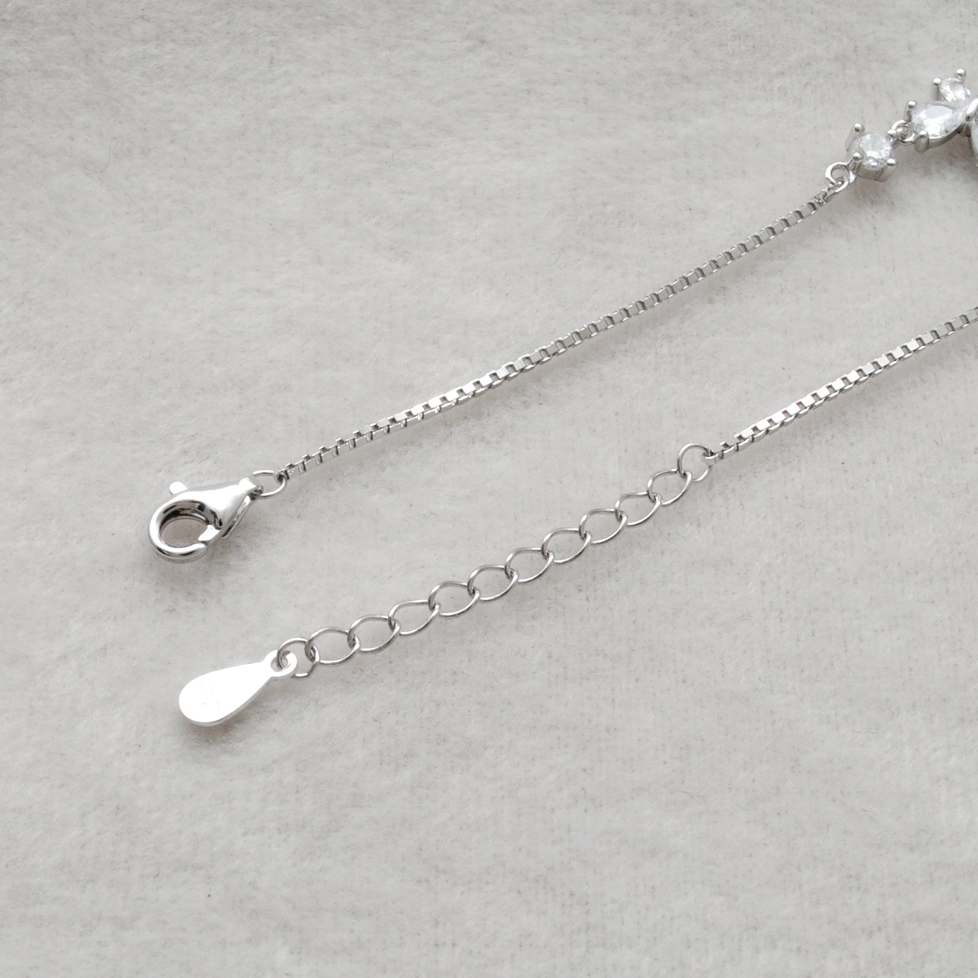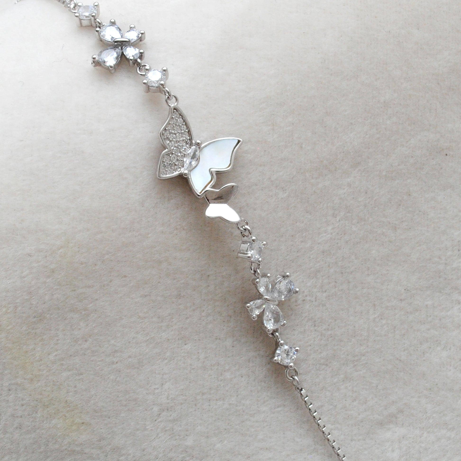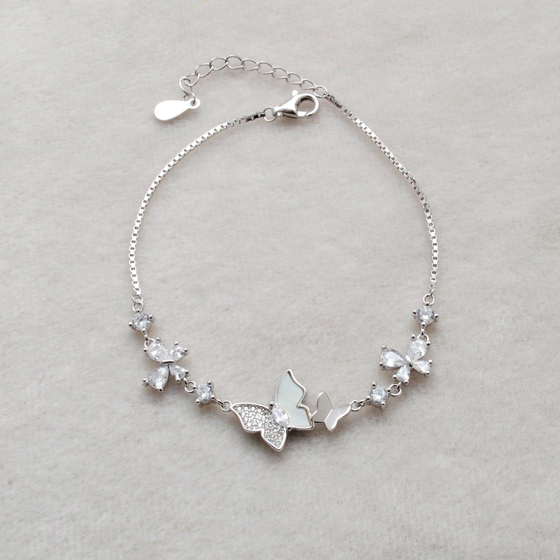 Add a touch of elegance with this dainty butterfly bracelet, crafted from 925 sterling silver and adorned with sparkling cubic zirconia. Its minimalist design and delicate charm make it perfect for everyday wear or as a thoughtful gift for a loved one.