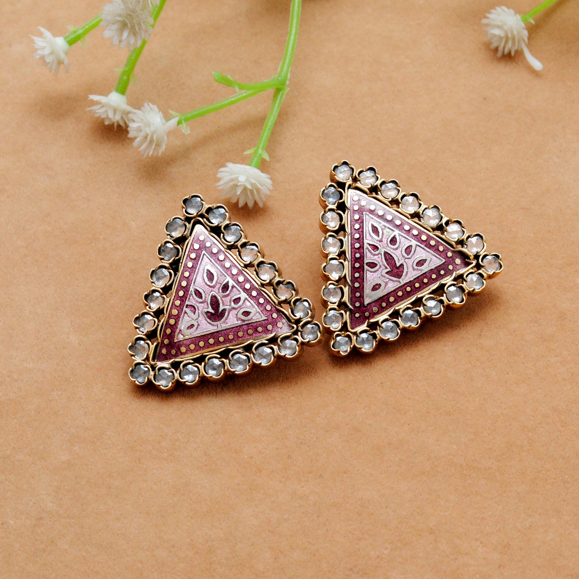 925 Sterling Silver Enamel CZ Triangle Stud Earrings – Unique Gift for Her