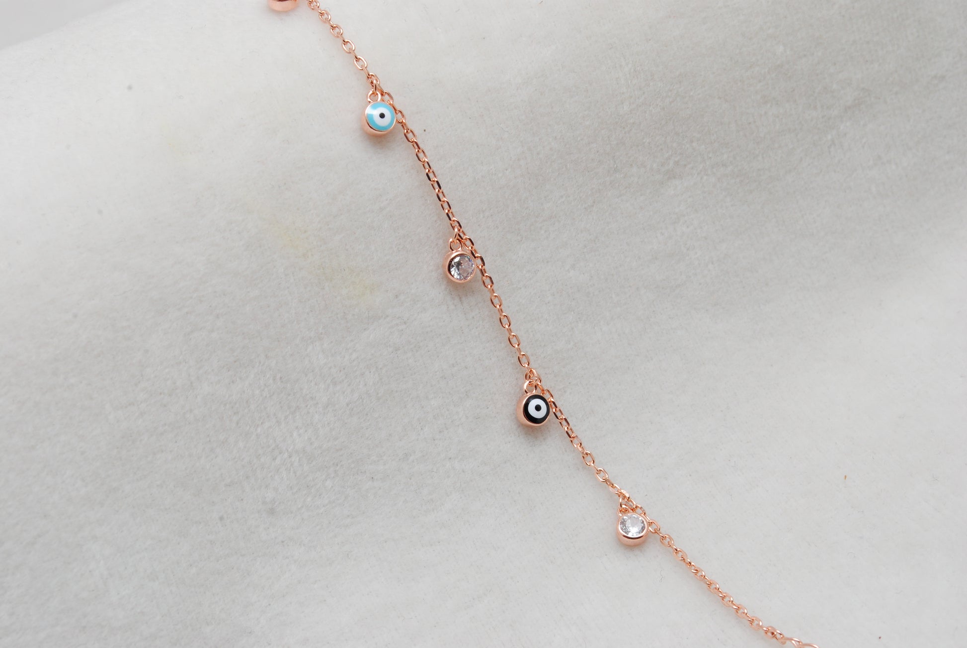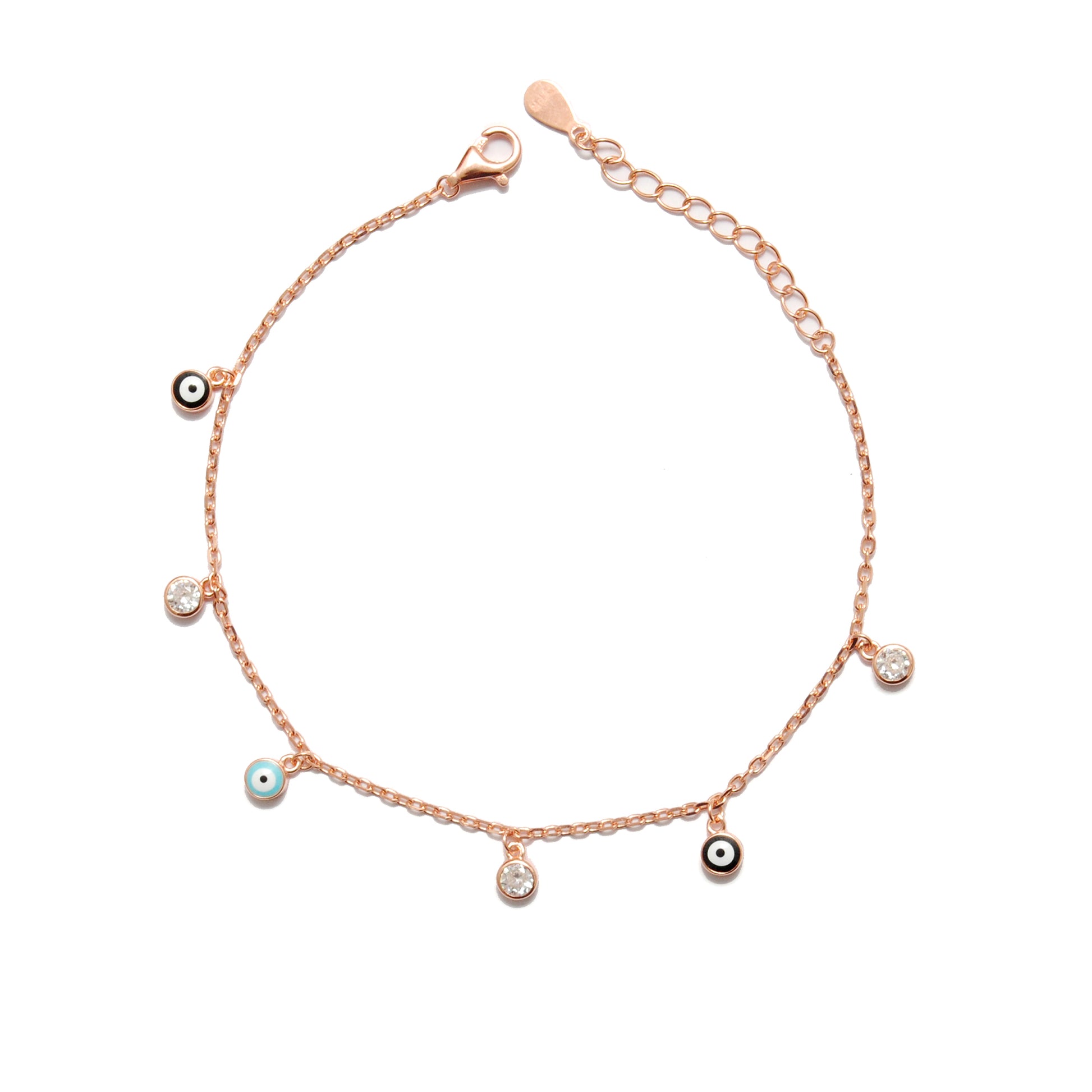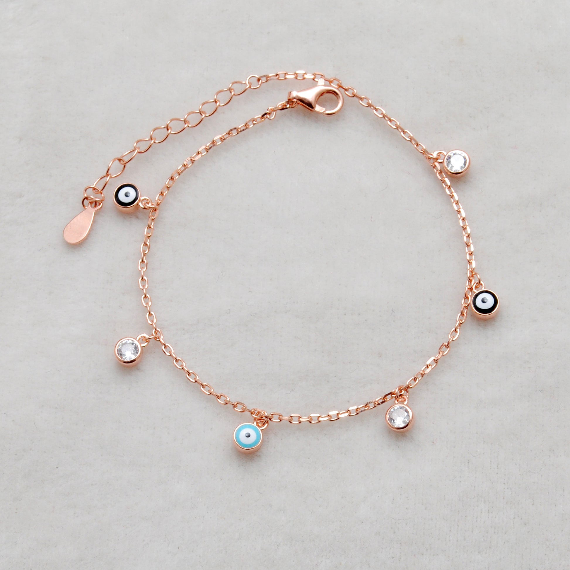 925 Sterling Silver Evil Eye CZ Enamel Charm Bracelet – Rose Gold and Silver Plated, Dainty Protection Jewelry